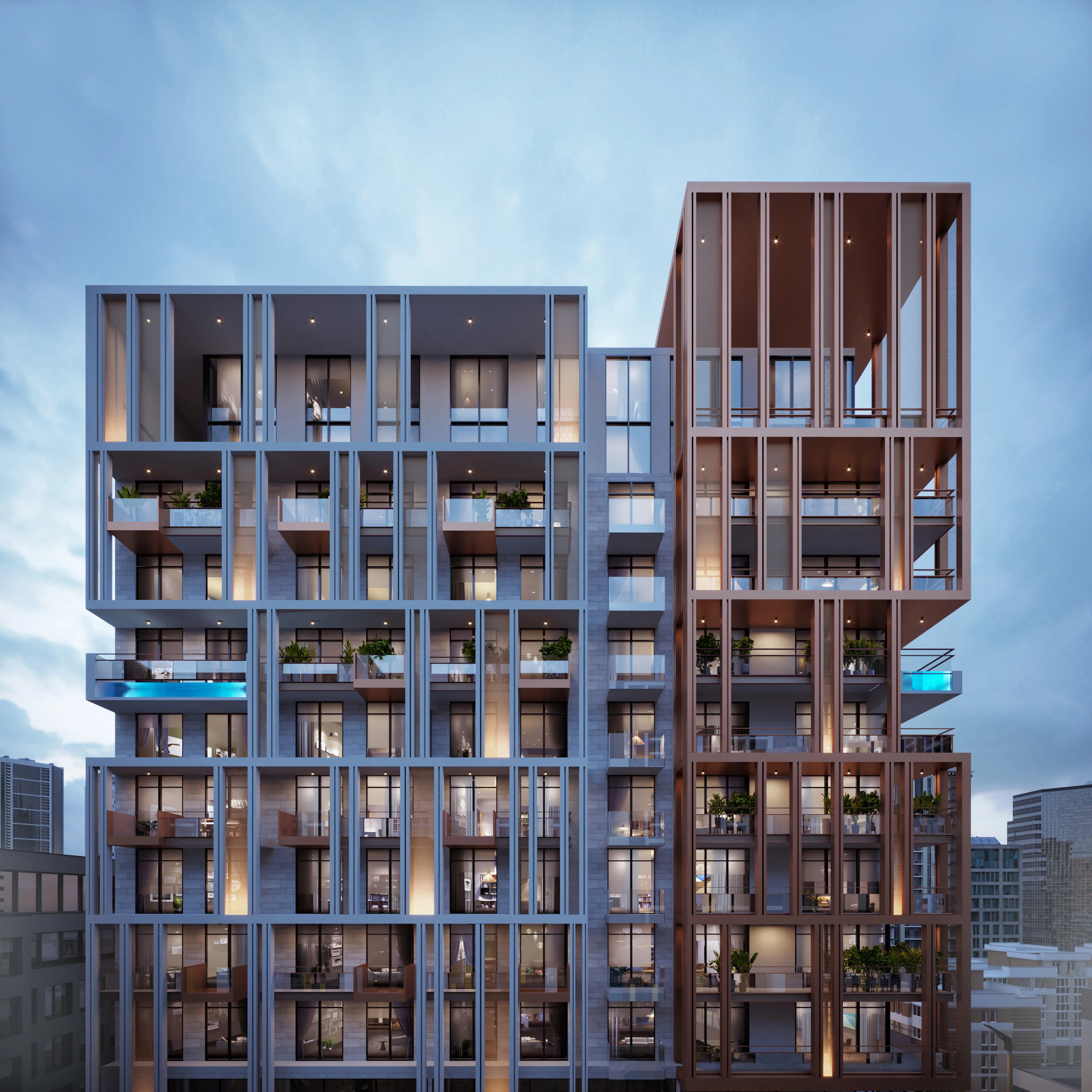 The residences at AB Cavalier range from studios and one-bedroom apartments to exclusive three-bedroom duplexes, some featuring private pools. Interiors are designed in a minimalist contemporary style inspired by natural Nordic aesthetics, with clean lines, warm earthy tones, and refined textures. Open layouts, generous natural light, high ceilings, and carefully selected materials create spaces that feel both elegant and welcoming, offering residents a harmonious blend of functionality, comfort, and understated luxury.