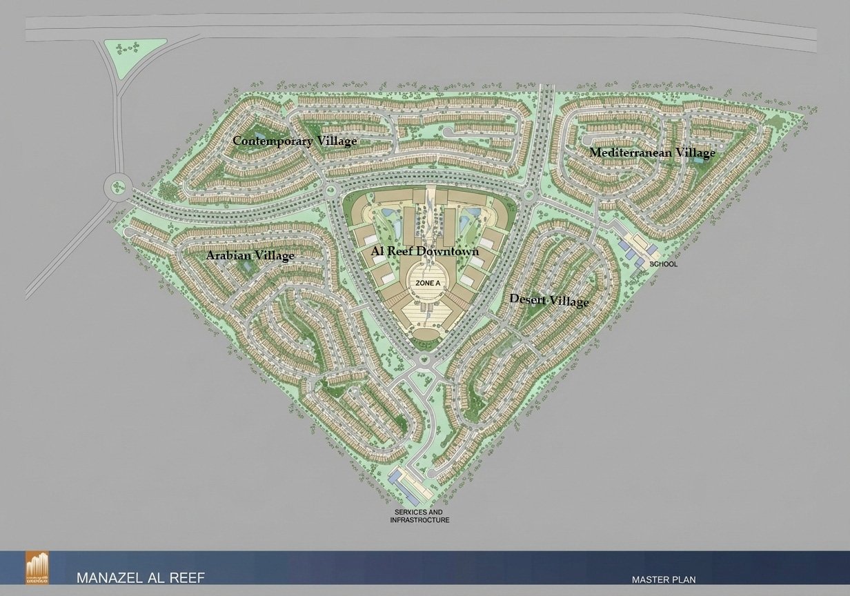 Al Reef Community’s master plan features a well‑designed mix of villas and apartments, offering diverse lifestyle options in Abu Dhabi. The development includes Al Reef Downtown, a vibrant apartment district, and four themed villa communities: Arabian, Mediterranean, Contemporary and Desert. Each precinct blends unique architectural styles with landscaped spaces, retail outlets and family‑friendly amenities, creating an affordable, integrated and highly desirable residential destination.