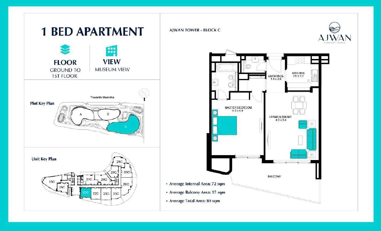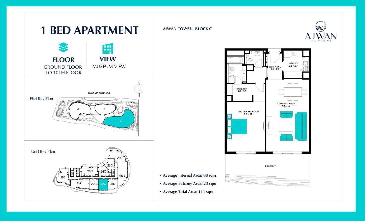 Situated in the heart of Saadiyat Island, Ajwan Towers offers unmatched connectivity to Abu Dhabi’s most prestigious destinations. Residents are minutes away from Louvre Abu Dhabi, Saadiyat Beach, Manarat Al Saadiyat, and the upcoming Zayed National Museum. The community is also close to top-tier schools, luxury resorts, and retail promenades. With quick access to major highways, Downtown Abu Dhabi and Abu Dhabi International Airport are easily reachable, enhancing both lifestyle convenience and investment value.