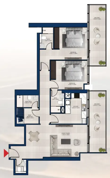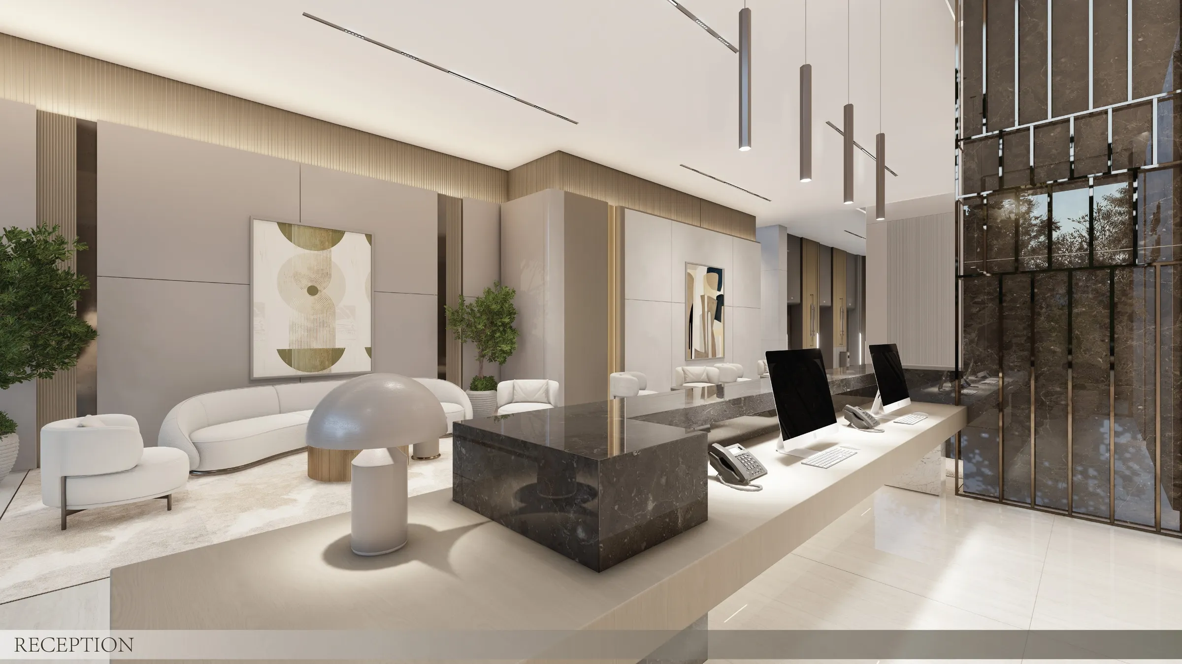 The residential tower offers thoughtfully designed apartments that maximize natural light, privacy, and functionality. Floor-to-ceiling windows, intelligent layouts, and refined interiors define each home, while select residences feature private balconies with exclusive touches such as integrated jacuzzis. Neutral tones, soft textures, and contemporary finishes contribute to an atmosphere of calm sophistication, ensuring that every unit feels both luxurious and livable.