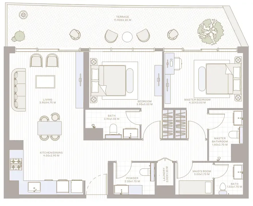 Inside, the residences are designed to elevate everyday life through smart layouts and premium finishes. Each unit is tailored for 1-, 2-, or 3-bedroom living, offering open-plan spaces bathed in natural light. High-quality materials, streamlined form and function, and well-considered interior details create homes where comfort and style sit side-by-side. Whether moving in or investing, Alder offers layouts that feel spacious, modern and enduring.