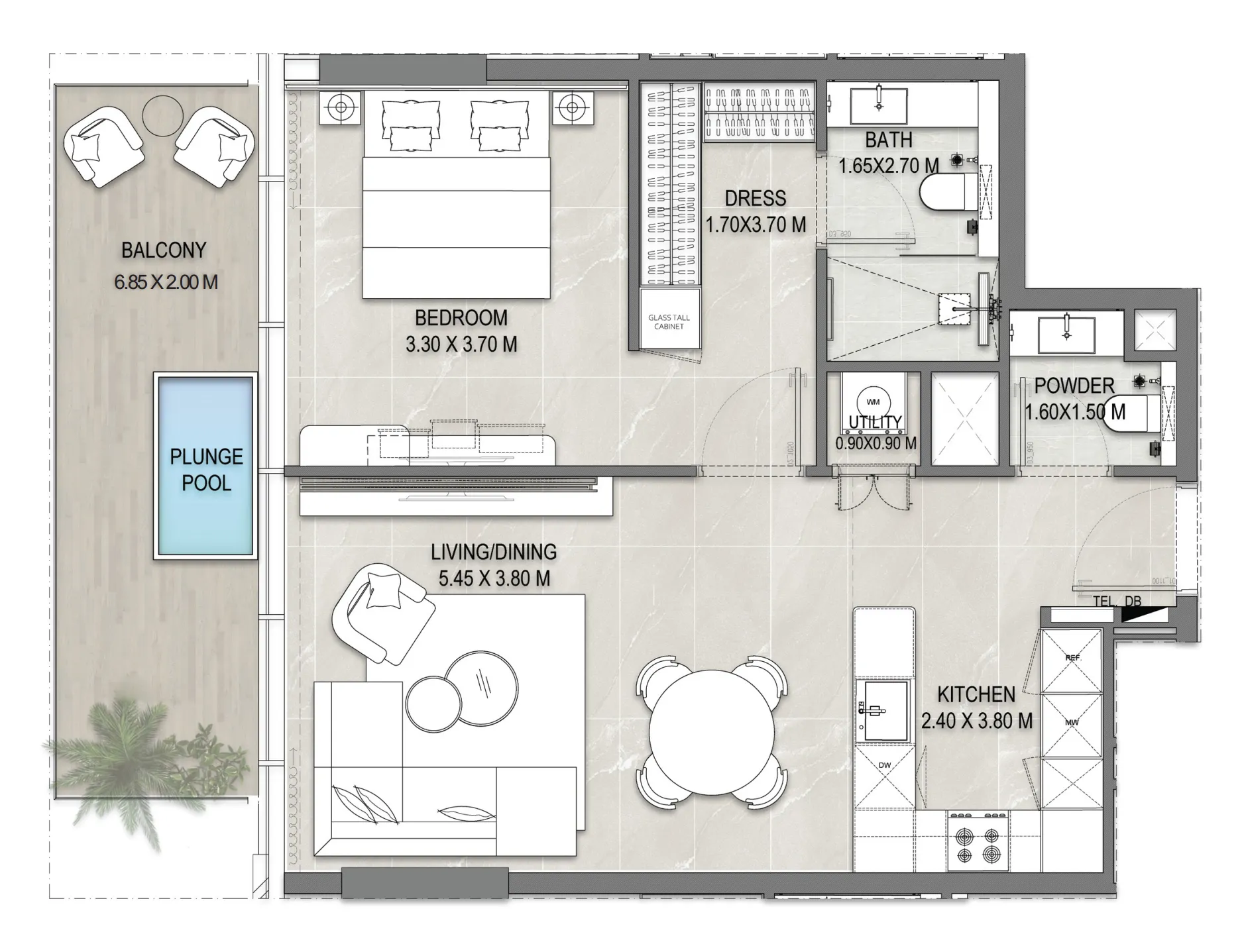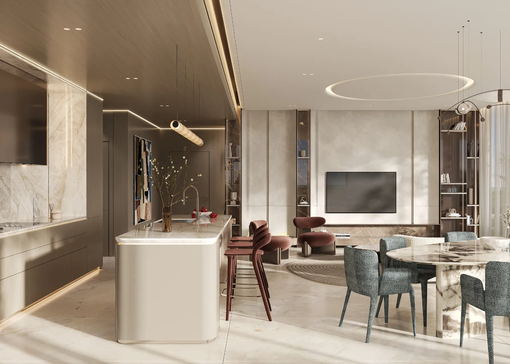 The project offers a variety of luxurious amenities for its residents. Here, you’ll find unique beach-edge pools, an infinity pool on the rooftop with panoramic views, an open-air cinema, a private fitness center, and a wellness area for rejuvenation. All communal spaces are thoughtfully designed to create an atmosphere of tranquility and comfort, where every moment of life is filled with relaxation and joy.