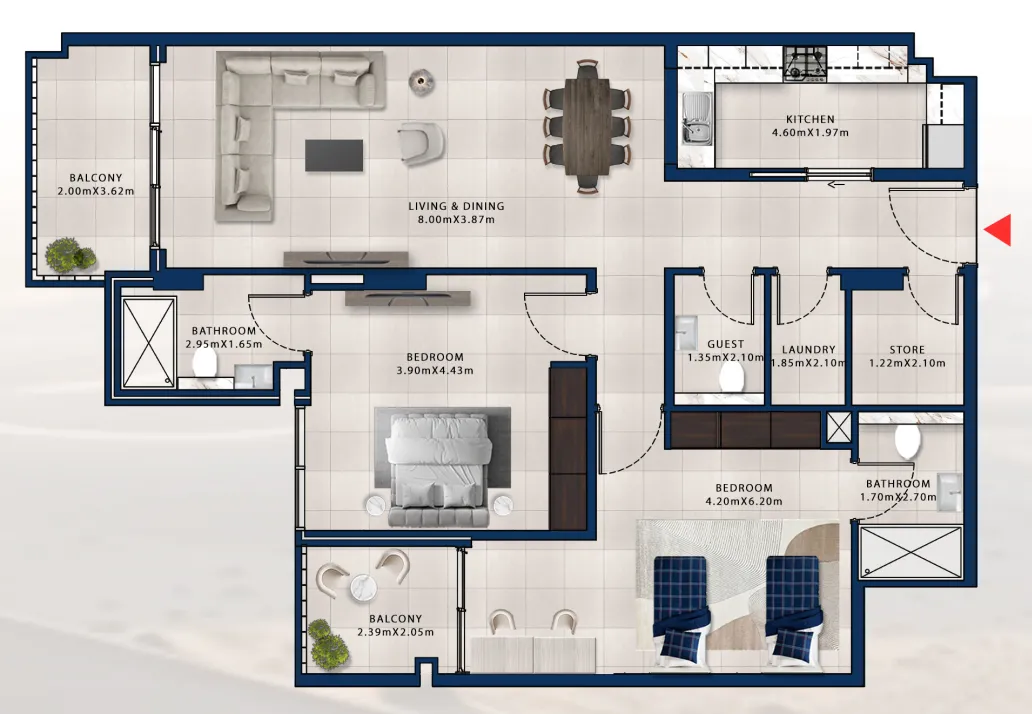The residences at Asayel Avenue feature well-planned layouts that prioritize comfort, natural light, and efficient use of space. Interiors are designed with a modern aesthetic, combining neutral palettes, functional arrangements, and quality detailing to suit a wide range of lifestyles. Whether for families, professionals, or end users seeking long-term stability, each home offers a comfortable and adaptable living experience.