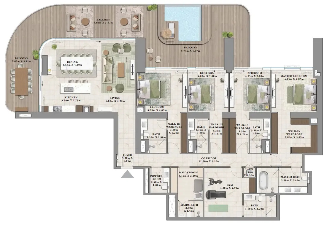 Each residence is crafted with premium materials and warm tones, reflecting the meticulous craftsmanship that defines the Palace brand. The spacious layouts, thoughtful flow of natural light and sweeping views come together to elevate everyday living to a new standard. Avarra by Palace stands as a perfect harmony of style and comfort, offering an environment where luxury is not only seen, but felt in every moment.
