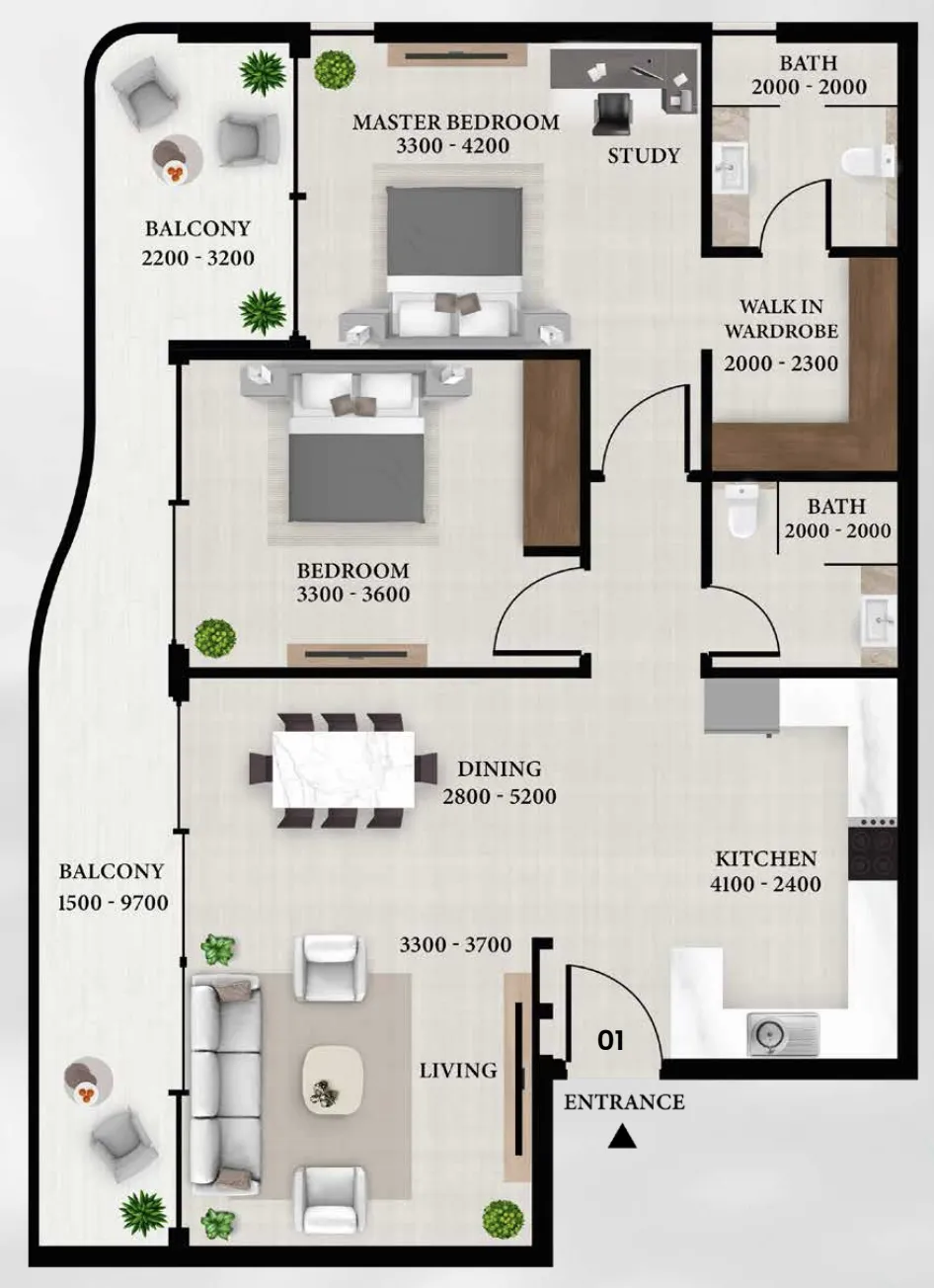 Residents enjoy an exceptional range of amenities designed to support wellness, recreation, and community living. Highlights include a rooftop artificial beach, infinity pool, children’s pool and play areas, jogging track, yoga zones, a techno gym, CrossFit areas, floating lounges, and a rooftop botanical garden. Enhanced by smart home automation, secure access, and family-oriented facilities throughout Dubai South, Avion Residence delivers a complete lifestyle where comfort, activity, and peace of mind coexist seamlessly.