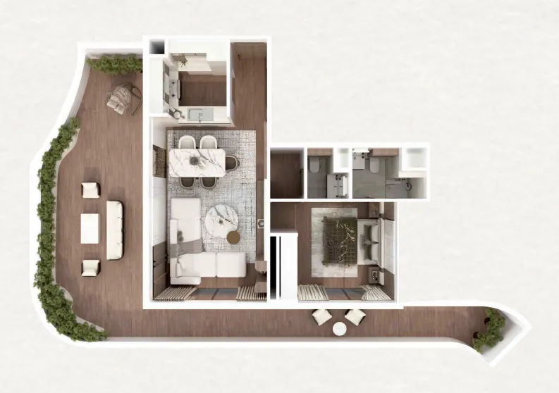 Interiors at Barari Gate by ADE are finished with premium materials that reflect elegance, comfort, and practicality. Living spaces are bright and inviting, kitchens are designed with modern finishes, efficient layouts, and ample storage, while bedrooms feel calm and restful with quality detailing and natural light. Bathrooms feature refined fittings, clean lines, and neutral tones, creating a cohesive, sophisticated atmosphere throughout every home.