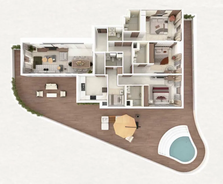 The amenities at Barari Gate by ADE are extensive and carefully curated to support wellness, activity, and social connection. Residents enjoy indoor and outdoor gyms, an infinity swimming pool with a separate children’s pool, yoga areas, sauna and jacuzzi, as well as basketball and padel courts for an active lifestyle. Family-friendly features such as indoor and outdoor kids’ play areas, jogging and bicycle tracks, a business center, and social spaces with billiards and ping pong complete a well-rounded living experience.