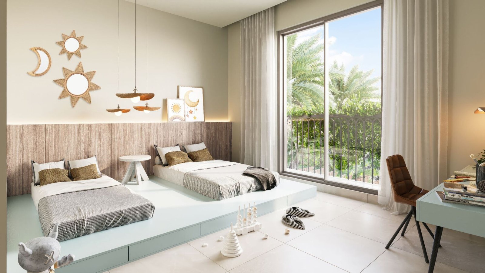 Bloom Living is built around the idea of a balanced, fulfilling lifestyle where residents can enjoy nature, wellness, and social connection every day. Multiple parks, shaded walkways, and cycling tracks create a green, family‑friendly atmosphere. The Clubhouse serves as the community’s recreational hub, offering swimming pools, tennis and basketball courts, and a wellness center with yoga, meditation, and massage facilities. Toledo residents also enjoy exclusive access to their own Community Center, featuring two swimming pools and children’s play areas surrounded by lush landscaping. With a mosque and two international schools within walking or cycling distance, daily life becomes effortless and sustainable.