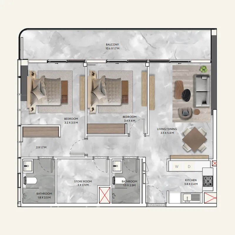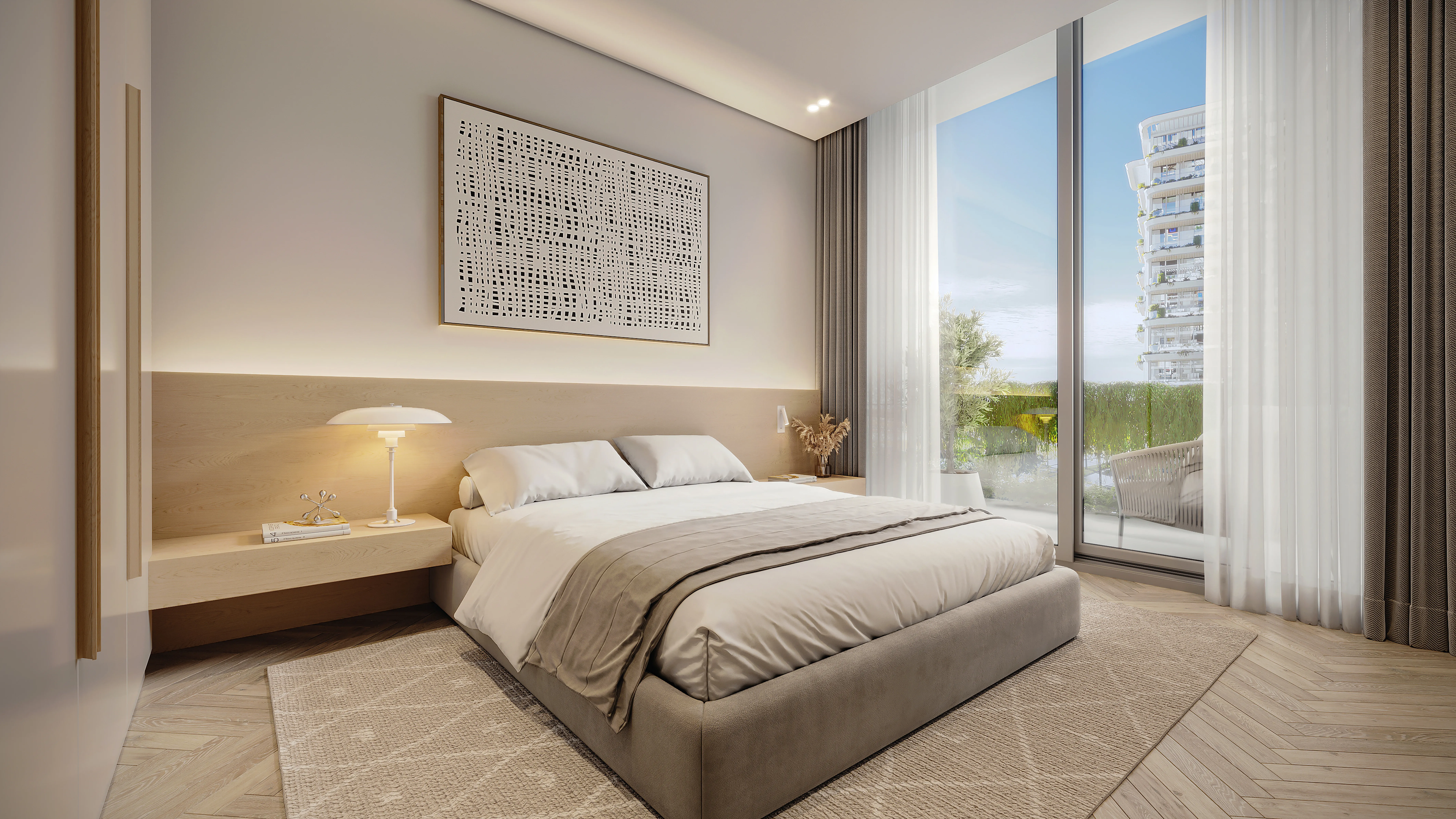 The residences feature a selection of 1–3 bedroom apartments, each meticulously designed to combine functionality and aesthetics. Expansive windows flood interiors with natural light, creating an inviting atmosphere complemented by open-plan layouts and subtle, modern finishes. Every detail is curated to foster a serene and harmonious lifestyle, offering residents privacy, space, and a sense of connection to the surrounding greenery.