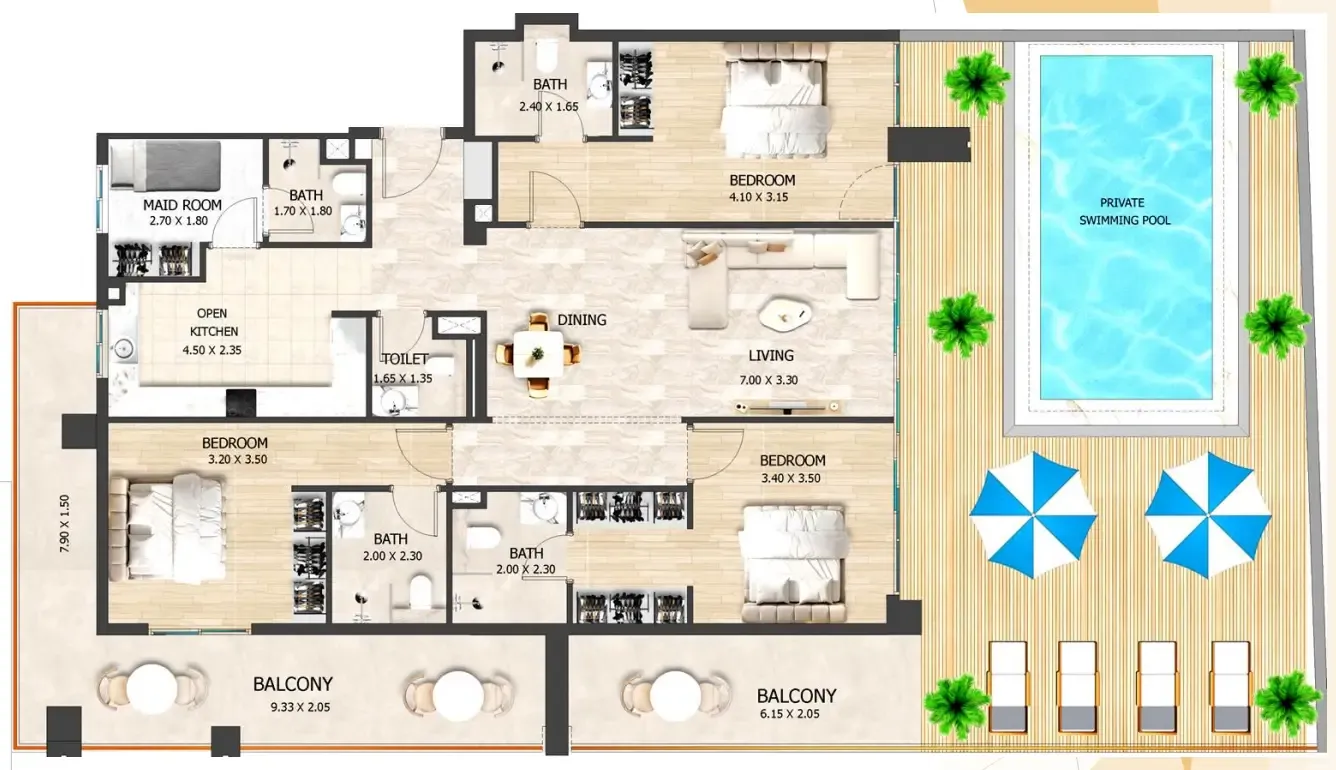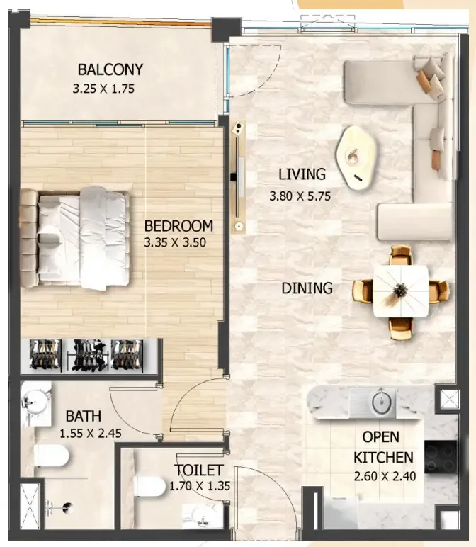 Interiors at Crystal Tower by VHS are designed with functionality and modern living in mind. The apartments are delivered without furniture and feature high-quality finishes with modern materials, providing a neutral and versatile interior palette. Practical layouts, contemporary detailing, and durable finishes allow residents to personalize their homes while benefiting from a well-executed, move-in-ready residential product.