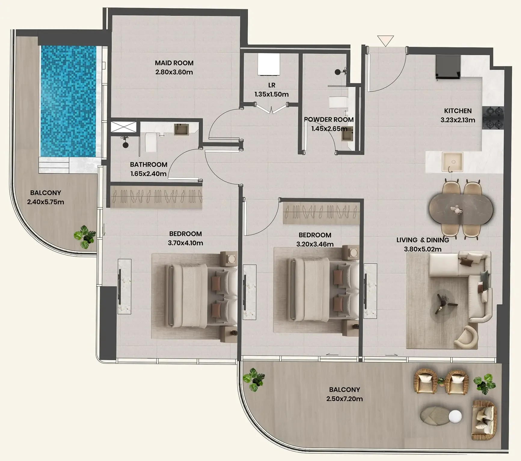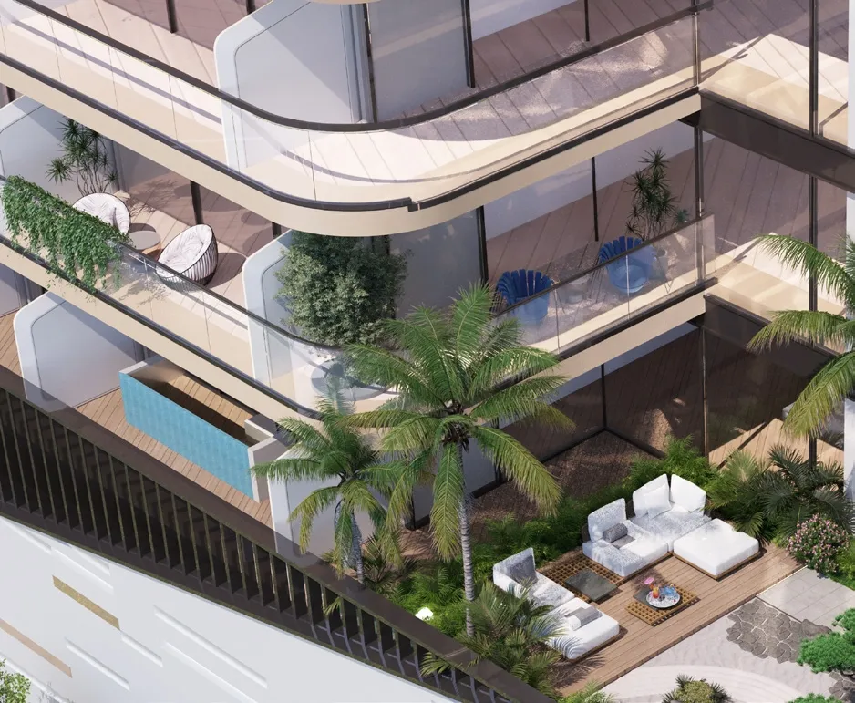 Inside, homes are shaped as tranquil retreats where natural stone, warm lighting, and soft textures come together in harmony. High ceilings and full-height windows bring in light and air, while smart-home systems and concierge services ensure effortless living. Kitchens open around sculpted marble islands, bathrooms mirror spa-like indulgence, and selected residences include private plunge pools — crafting an experience that feels both intimate and elevated.