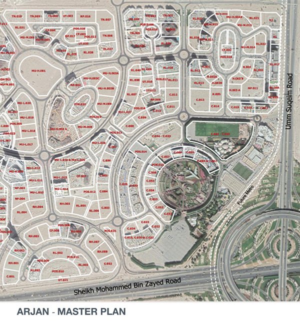 Arjan, in Dubailand, Dubai, is a mixed‑use master-planned community featuring residential, retail, hospitality, and recreational zones. The master plan includes low- to mid-rise apartment buildings, hotels, offices, parks, schools, and mosques, with strong road connectivity via E311 and Umm Suqeim Road. Residential areas dominate the layout, while leisure attractions like Dubai Miracle Garden are integrated. The plan emphasizes a balanced lifestyle with modern amenities, open spaces, and community facilities, making Arjan ideal for families, professionals, and investors seeking affordable, well-connected properties.