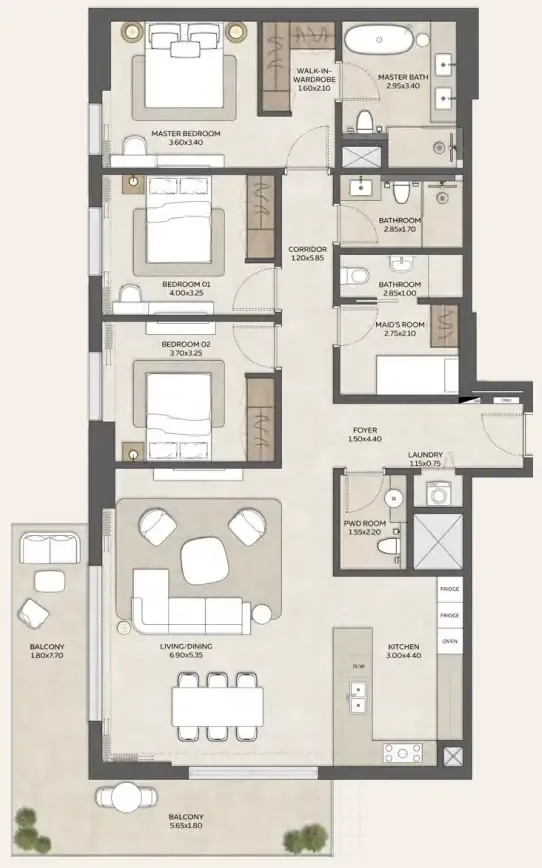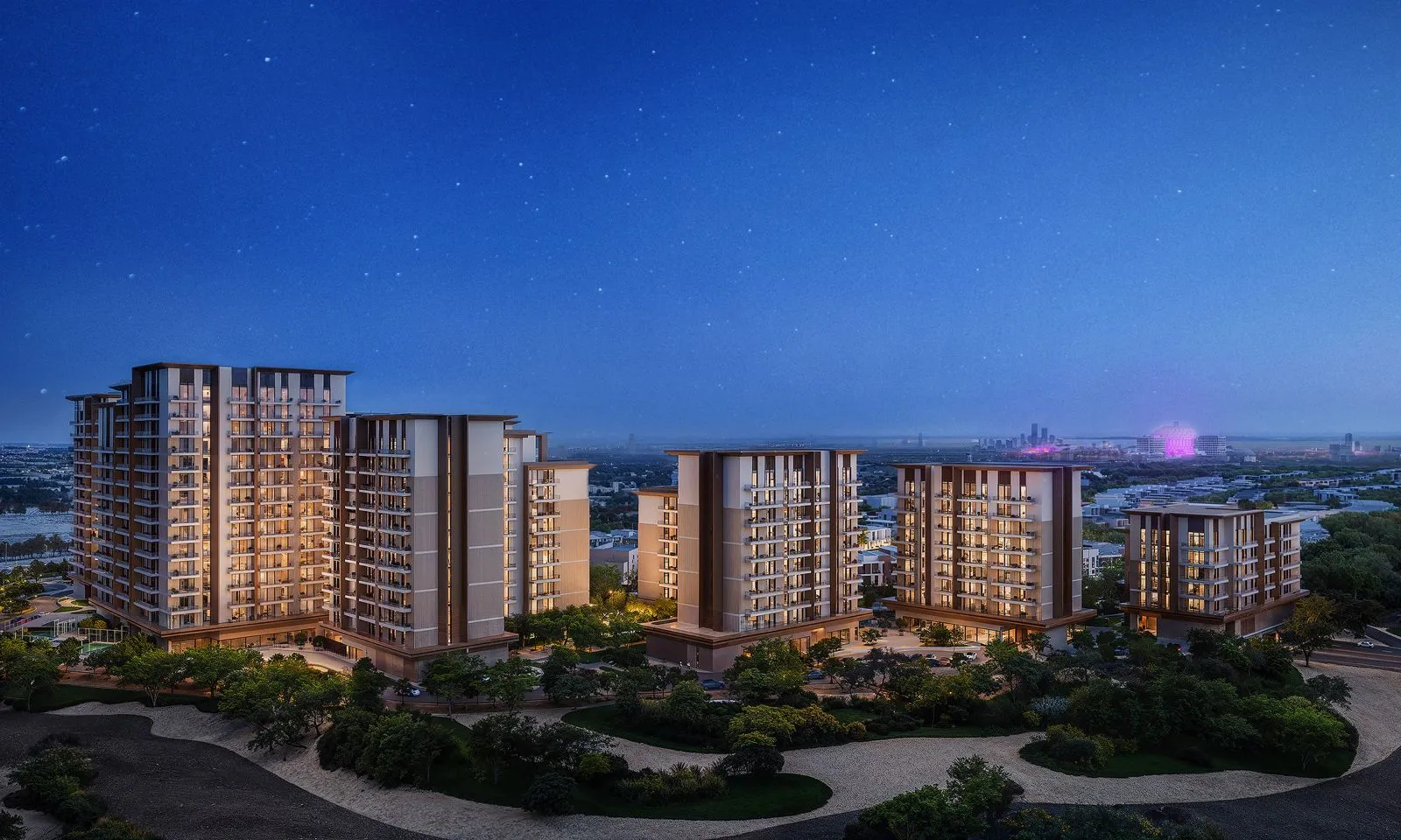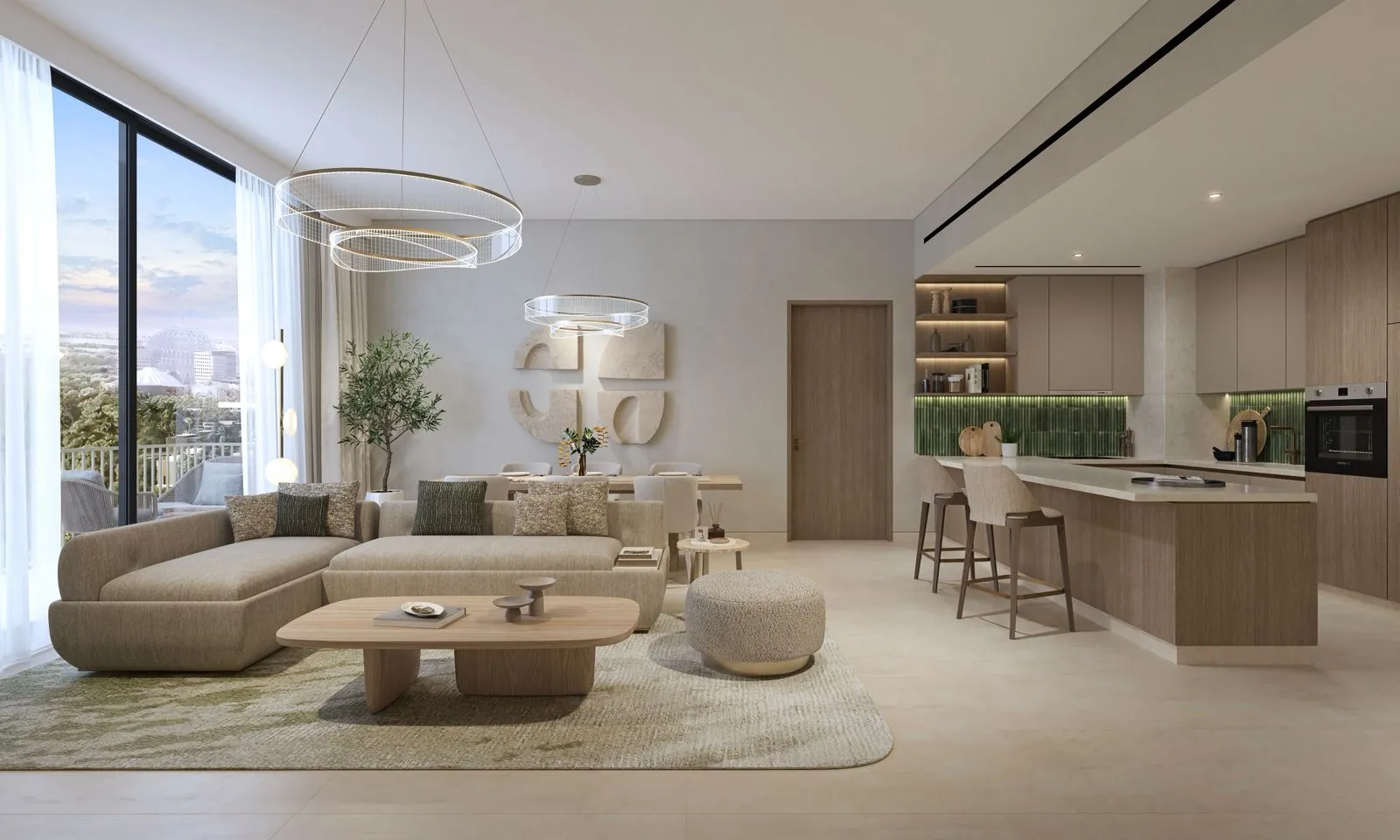 Designed as a thoughtfully connected community, Expo Valley Views offers a collection of 1-, 2-, and 3-bedroom residences arranged across multiple floors. Private terraces overlook lush courtyards, shaded gardens, and the valley landscape, while generous layouts bring together openness, comfort, and modern living. Every residence is envisioned as a tranquil retreat, blending contemporary architecture with the quiet beauty of Expo City’s green surroundings.