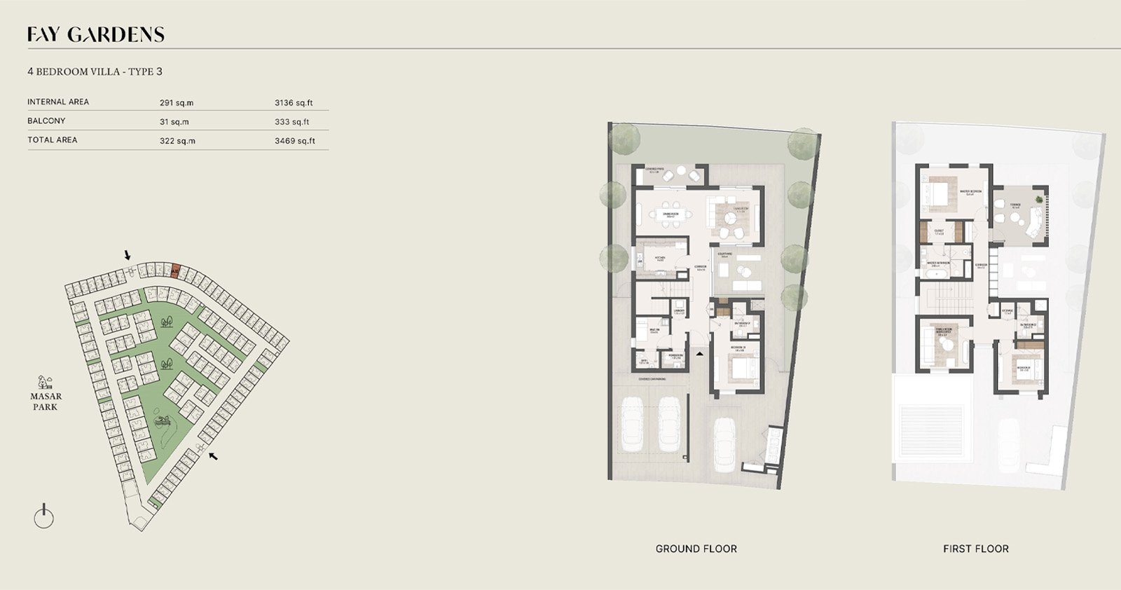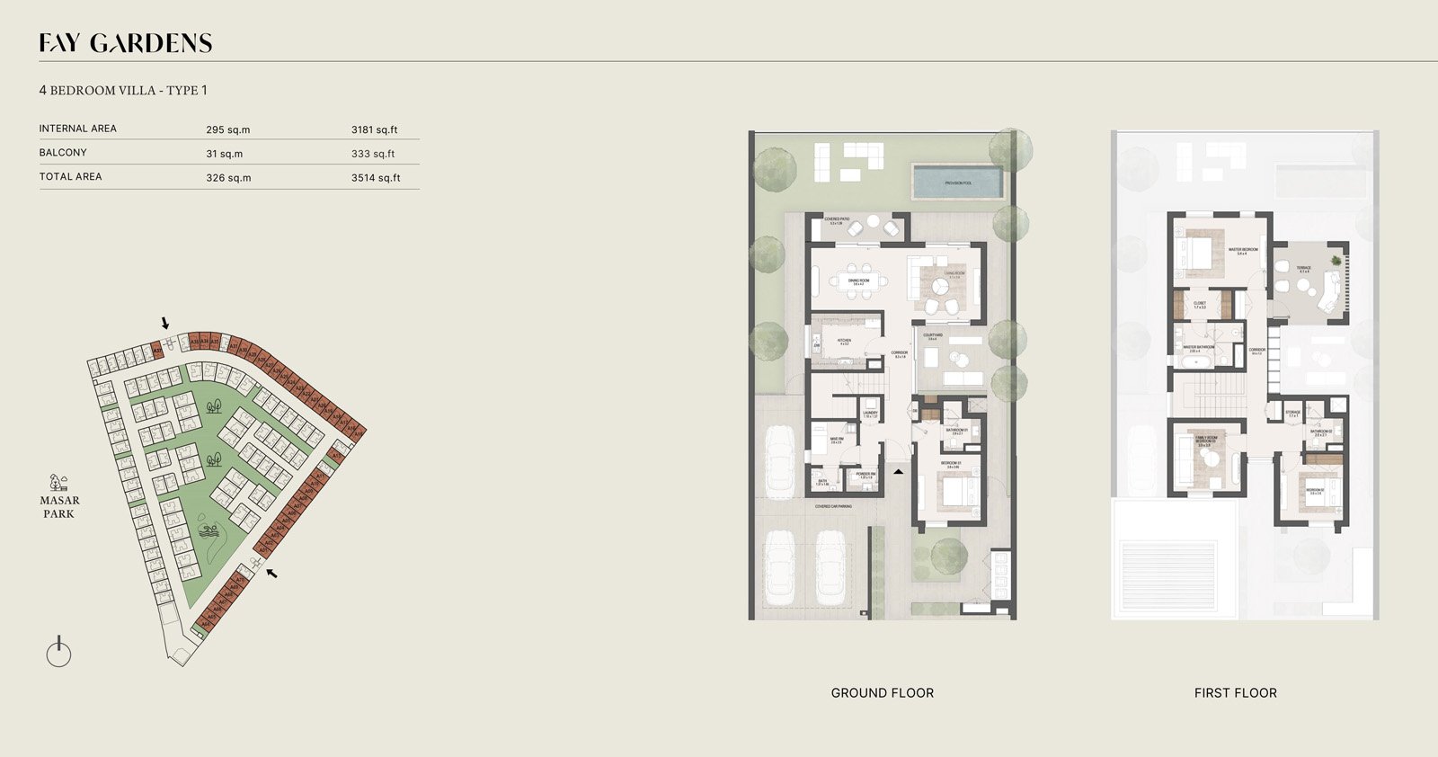 Located in Masdar City, one of the world’s most sustainable urban developments, Fay Gardens benefits from excellent connectivity. Residents enjoy quick access to Abu Dhabi International Airport, Yas Island, Saadiyat Island, and key cultural landmarks such as Louvre Abu Dhabi. The community is supported by advanced infrastructure, public transport links, and a thriving eco-friendly environment.