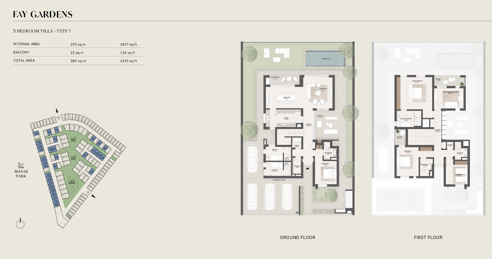 Fay Gardens, the first phase of the visionary Fay Hills development in Masdar City, Abu Dhabi, offers a refined blend of luxury, wellness, and sustainable living. Designed for families seeking balance between modern comfort and nature, this eco-friendly community introduces premium villas surrounded by lush green corridors, shaded pathways, and serene parks. As part of Masdar City’s progressive urban environment, Fay Gardens is thoughtfully master-planned to encourage mindful living through beautifully landscaped surroundings and integrated wellness spaces.