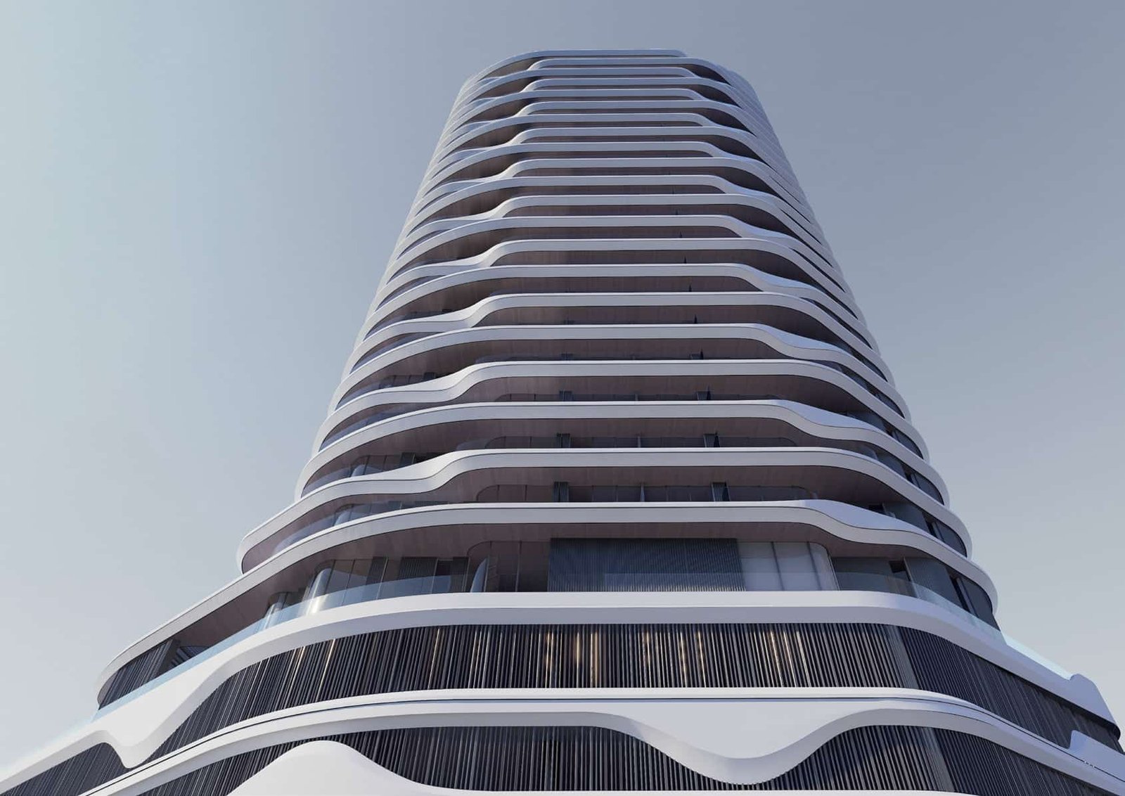 Organic, environment-responsive architecture featuring soft curves, climate-controlled balconies, and biophilic greenery.