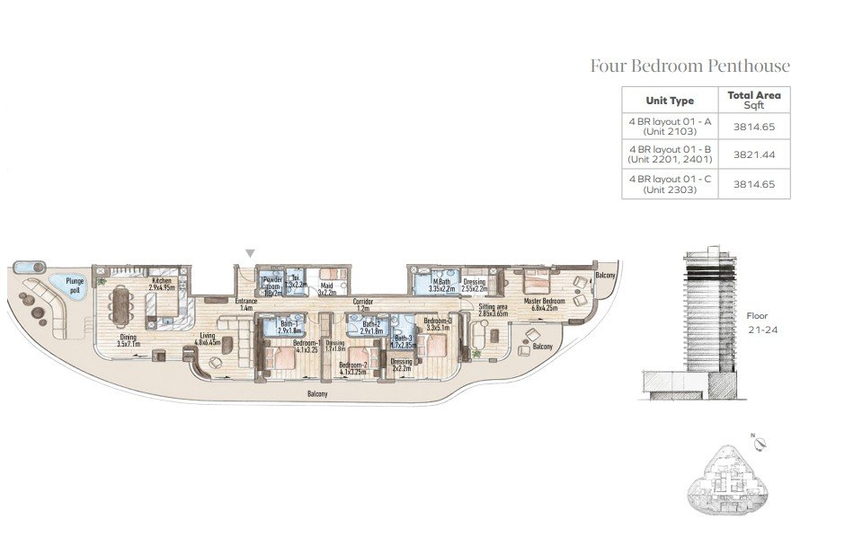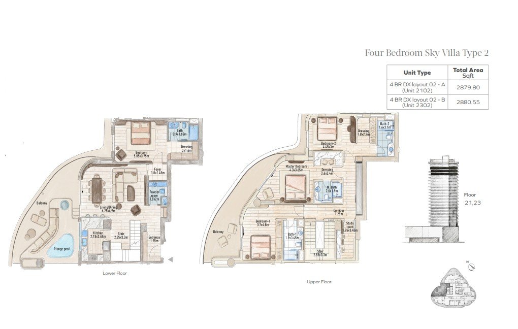 Selection of 1–3 bedroom apartments, 4-bedroom penthouses, and sky villas with spacious layouts and natural light.