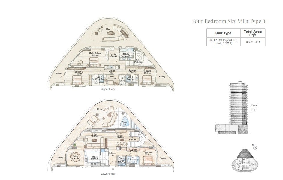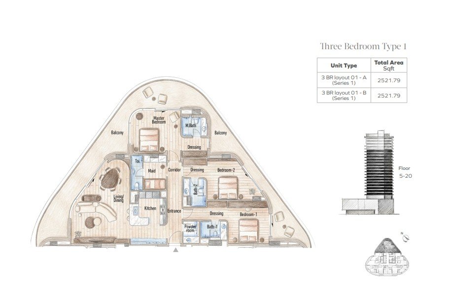 Flow25 offers a curated mix of residences designed to balance openness, privacy, and everyday functionality. Apartments range from approximately 814 to 2,522 sq ft, while 4-bedroom penthouses and sky villas extend up to around 4,939 sq ft, providing generous living environments for families and investors alike. Open-plan interiors, floor-to-ceiling glazing, and smart-home systems enhance comfort, efficiency, and natural illumination, while climate-controlled balconies support year-round indoor-outdoor living.