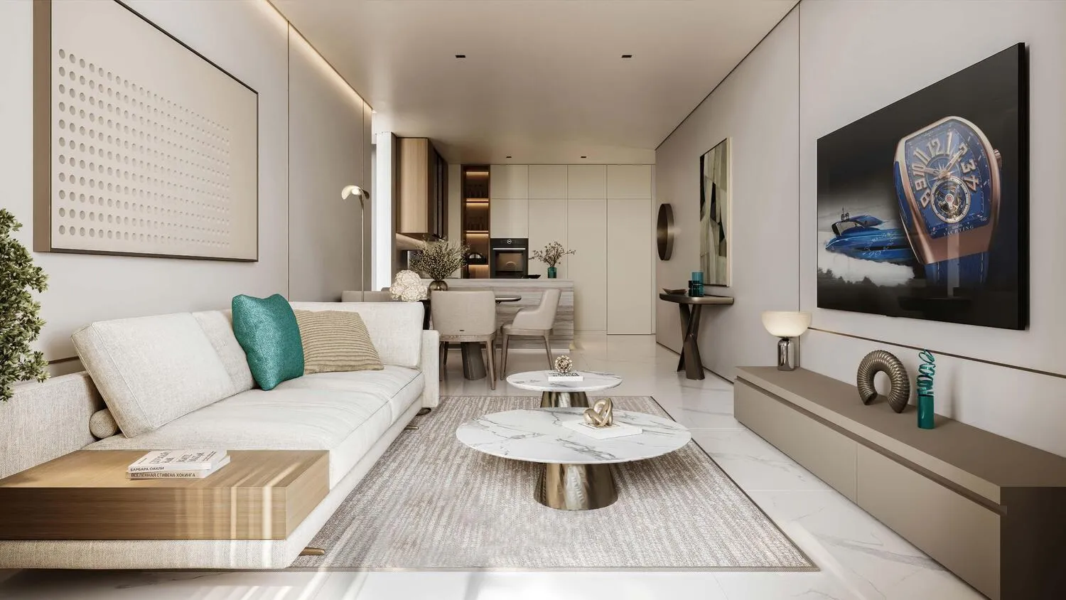 Inside, the residences mirror the sophistication of Franck Muller’s designs — where every space is crafted with meticulous attention to detail. Elegant interiors feature contemporary layouts, soft marine tones, and premium finishes that evoke a sense of serenity and grandeur. The ambiance of each apartment reflects the perfect balance between luxury and tranquility, turning every home into a private retreat overlooking the sea.