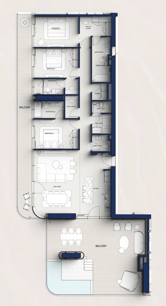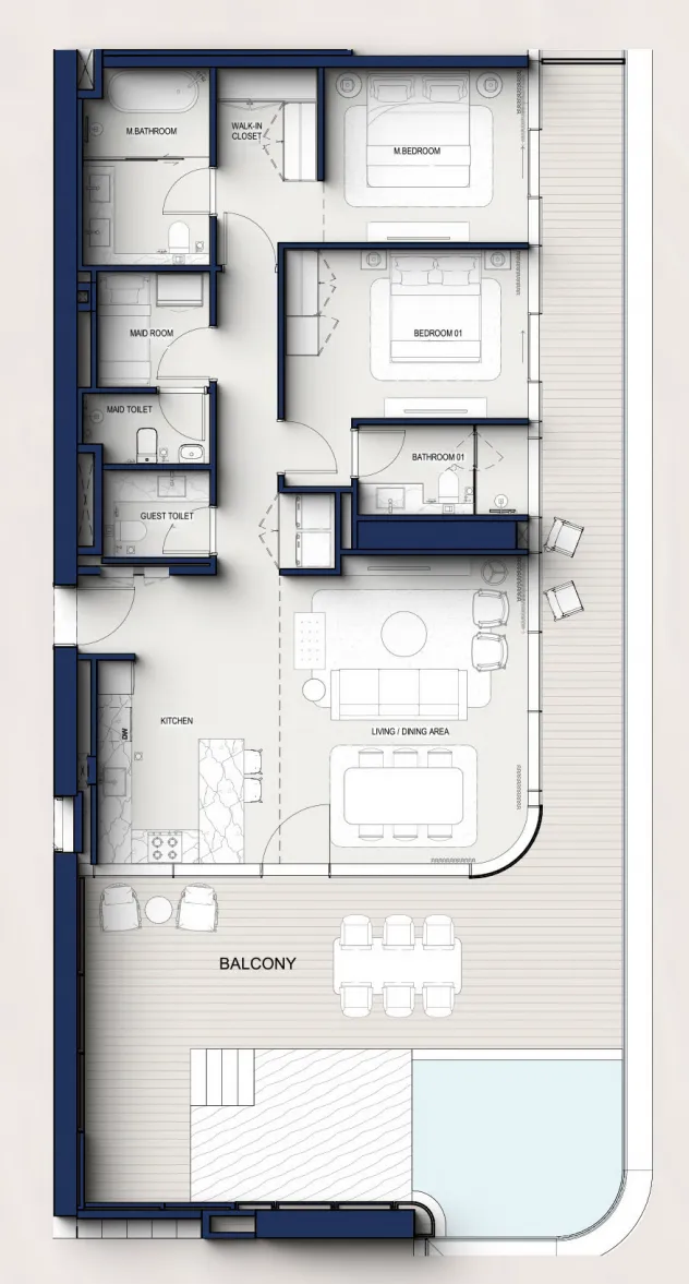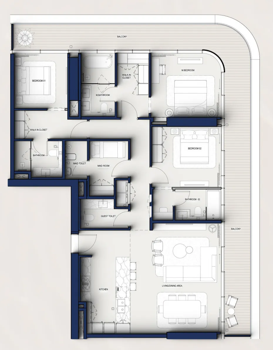 Designed as an icon on the peninsula, the tower features flowing contours and a vertical rhythm that captures natural light and uninterrupted sea horizons. Residents experience an atmosphere where everyday life unfolds effortlessly - from calm mornings overlooking the water to evenings framed by Dubai’s illuminated skyline. A curated selection of amenities - from horizon-edge lagoons to rooftop lounges - further elevates the sense of ease and quiet sophistication.