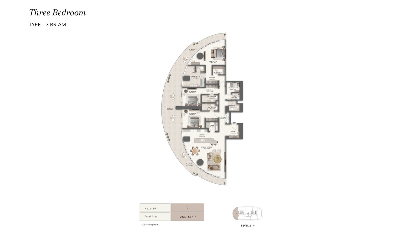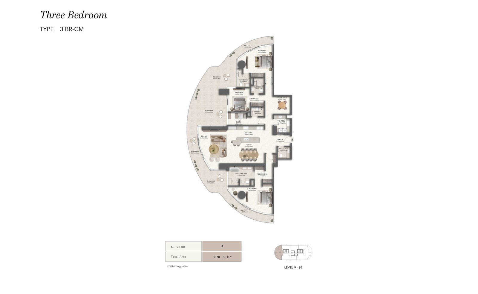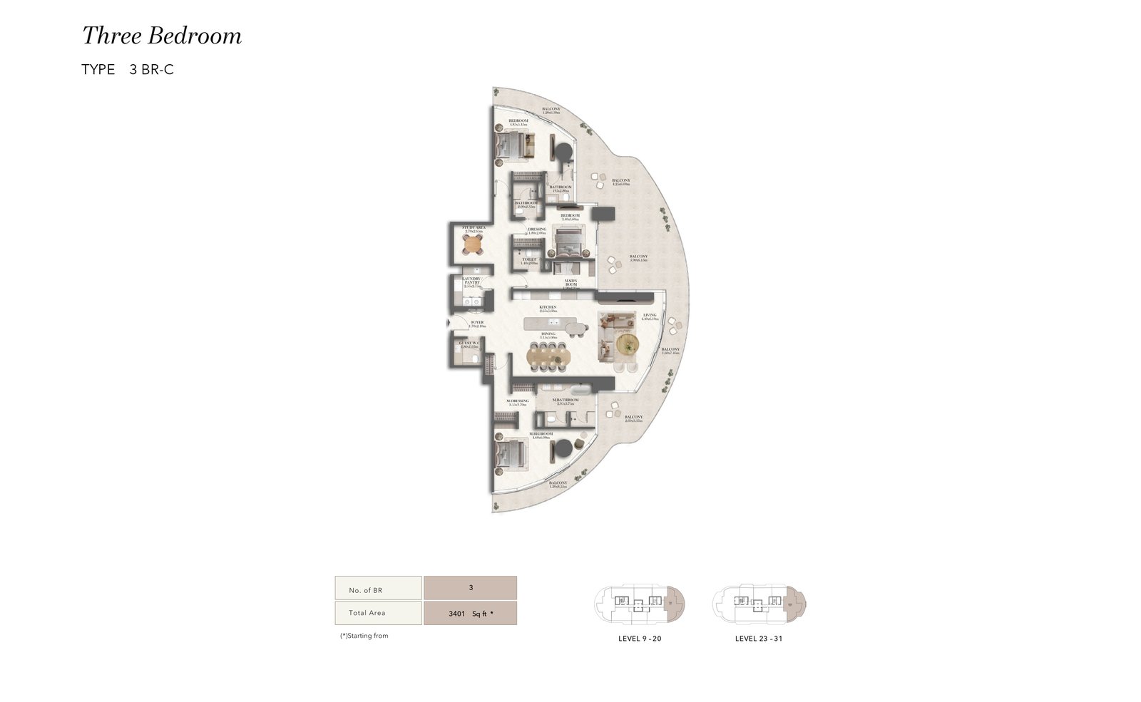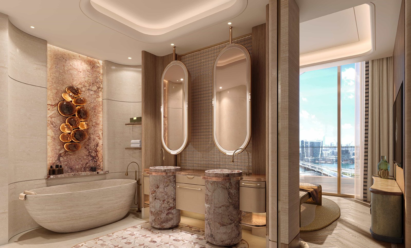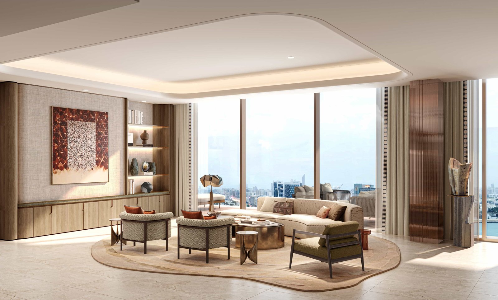Sculpted with flowing curves and bold lines, the tower stands as the amber jewel of Al Maryah Island. Floating terraces, sky‑high gardens, and a striking elevated pool redefine vertical waterfront living. Interiors are conceived as private sanctuaries shaped by Jumeirah’s hospitality ethos. Clean lines, refined proportions, and premium natural materials create depth, warmth, and understated luxury. Every residence is crafted with careful consideration to maximise natural light, enhance spatial flow, and frame uninterrupted views of the sea, skyline, and promenade.