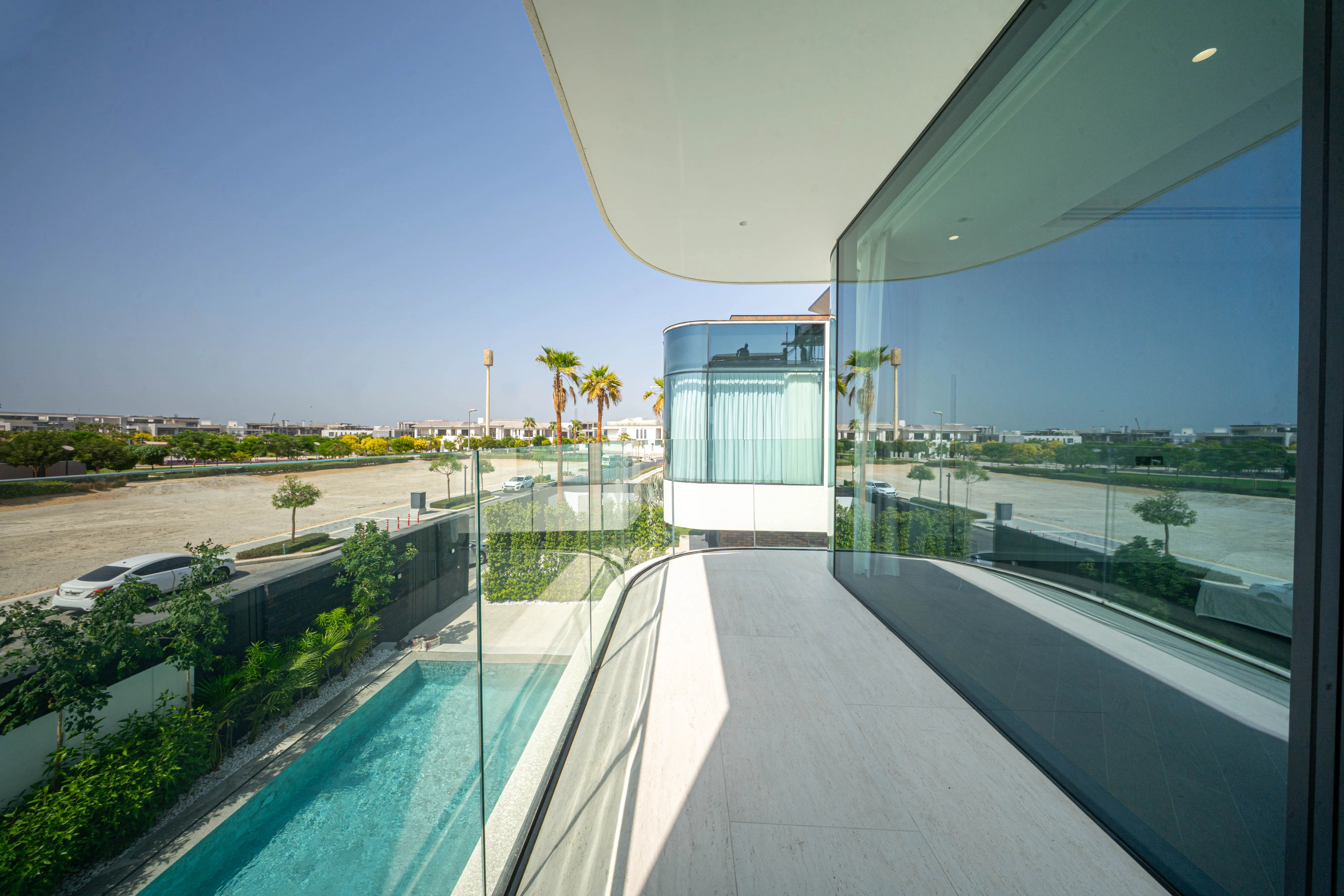 The villa spans four levels - basement, ground floor, first floor, and rooftop terrace - and features six spacious bedrooms, a maid’s and driver’s room, and parking for three cars. Interiors are designed around the philosophy of natural luxury, with open layouts, panoramic floor-to-ceiling windows, and refined materials such as stone and wood. Every element is thoughtfully curated to create a calm, light-filled environment that seamlessly connects living, dining, and outdoor spaces.