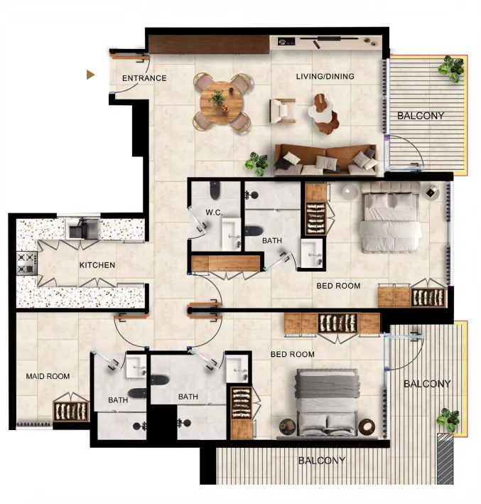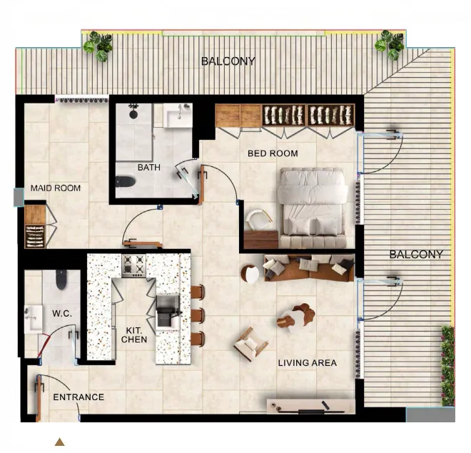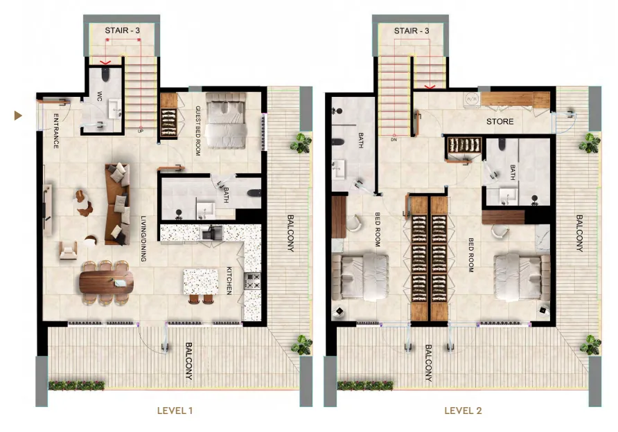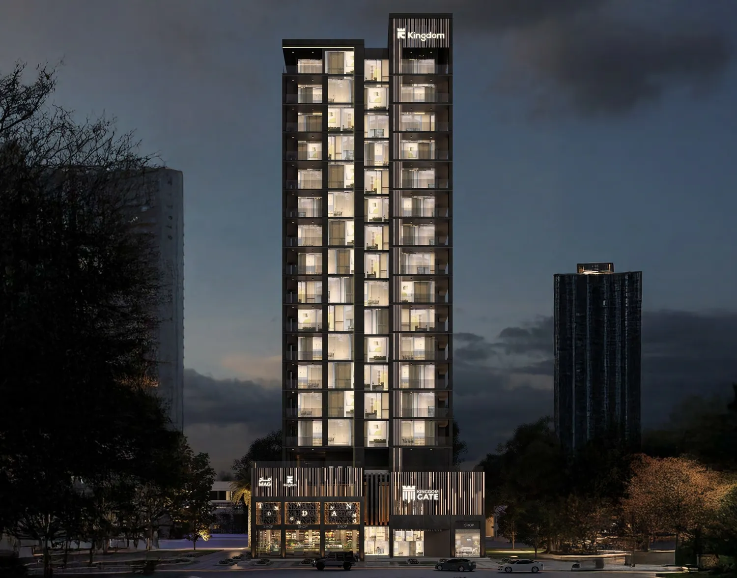 Inside, Kingdom Gate offers a curated mix of one-, two-, and three-bedroom apartments, along with distinctive duplex penthouses. Each home emphasizes natural light, smart spatial planning, and refined detailing to ensure a harmonious living experience. The tower integrates retail on the ground floor, lifestyle amenities on the podium level, and residential floors from levels 2 to 15, creating a cohesive community that merges convenience with contemporary elegance.