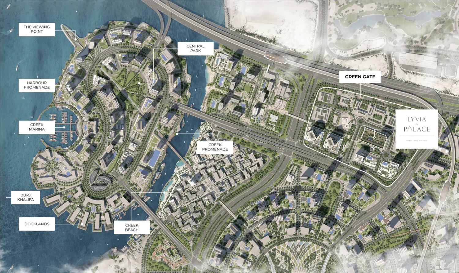 Perfectly situated in the Dubai Creek Harbour area, Lyvia By Palace connects its residents to the best of Dubai’s dynamic energy while preserving an atmosphere of peace and privacy. With its serene atmosphere and vibrant surroundings, Lyvia By Palace captures the essence of elevated living where beauty and tranquility meet. Whether for relaxation, play, or social gatherings, every element of Lyvia By Palace reflects thoughtful luxury and timeless design.