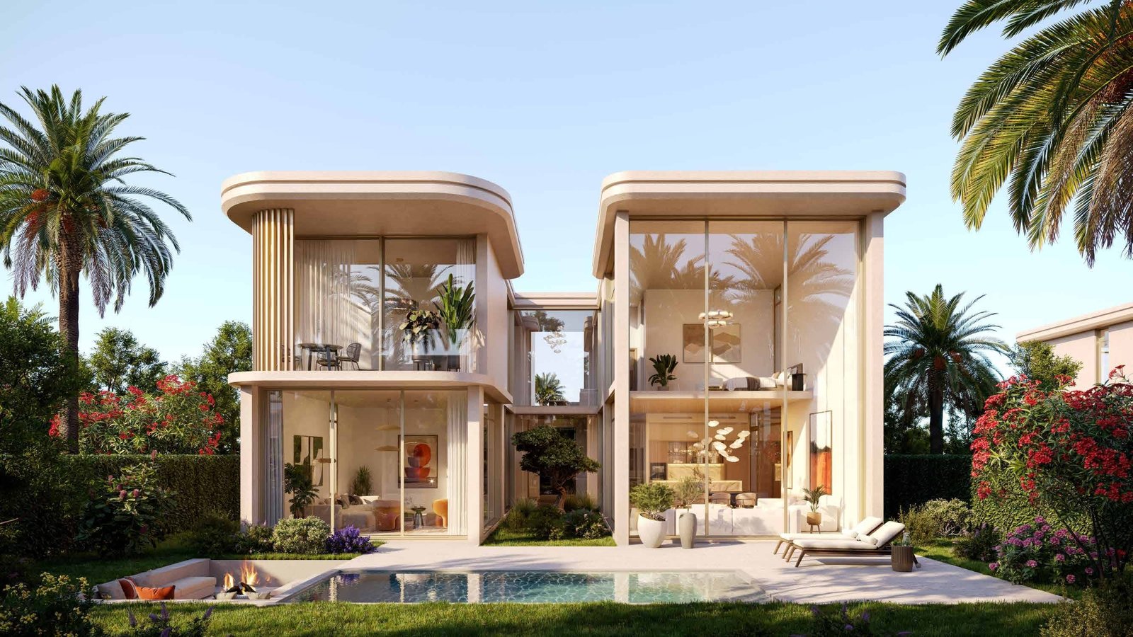 These homes form intimate clusters with private pools, generous outdoor areas, and architectural elements that balance openness with privacy. Double‑height living spaces, natural light, and seamless indoor‑outdoor transitions define the residential experience.