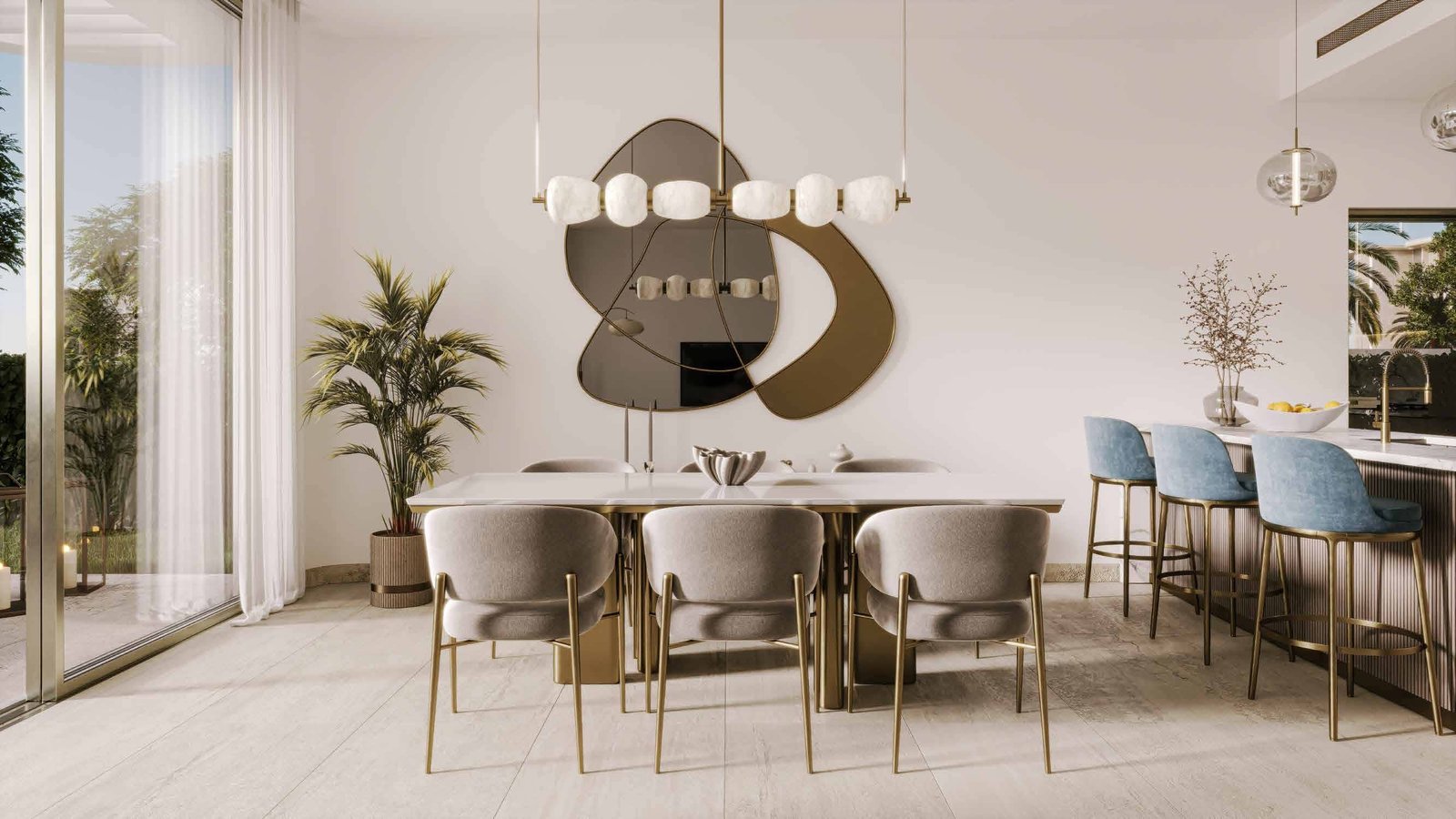 These residences offer terraces, private pools in select units, and open views across the landscape, creating a calm, grounded environment.