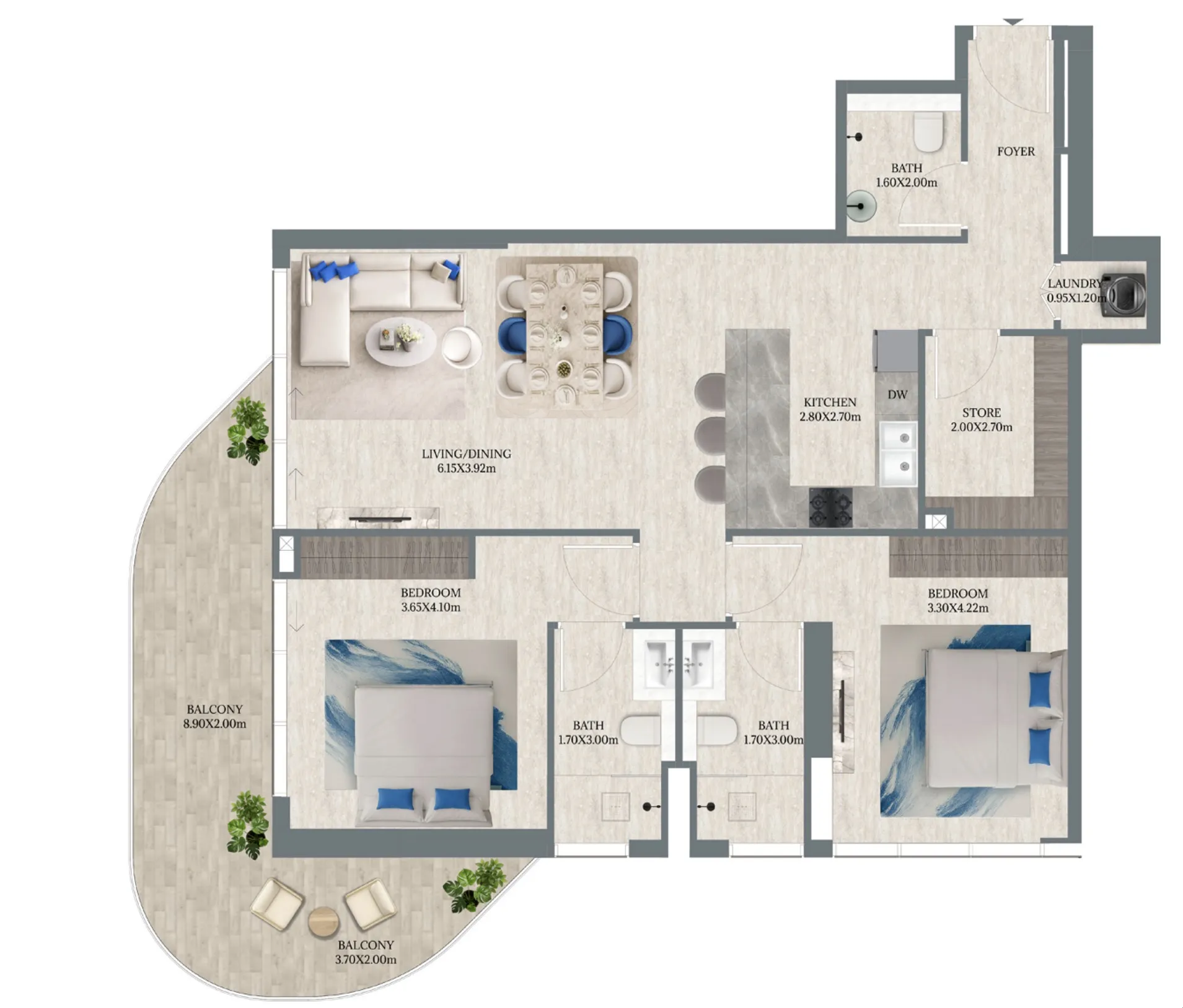 Apartments at Maravea Residences are delivered semi-furnished, offering both elegance and practicality with high-quality materials and refined finishes throughout. Kitchens come fully equipped with premium appliances, including a dishwasher in every unit, ensuring modern convenience from day one. The interiors reflect a clean, contemporary style, combining durable materials, tasteful finishes, and smart layouts that enhance comfort, functionality, and long-term value.