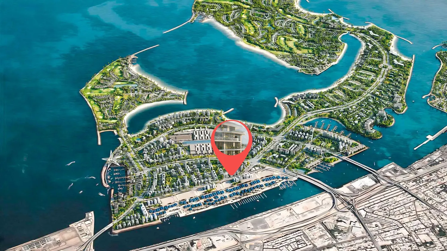 The islands are connected to the mainland via well-developed infrastructure, ensuring seamless access to the rest of the city. This prime location allows residents and visitors to enjoy the tranquility of island life while being just a short drive away from Dubai's bustling urban centers, including the iconic landmarks and vibrant districts such as Downtown Dubai, Dubai Marina, and Palm Jumeirah. The development includes a range of upscale amenities, including luxury hotels, gourmet dining options, high-end retail outlets, and world-class recreational facilities.
