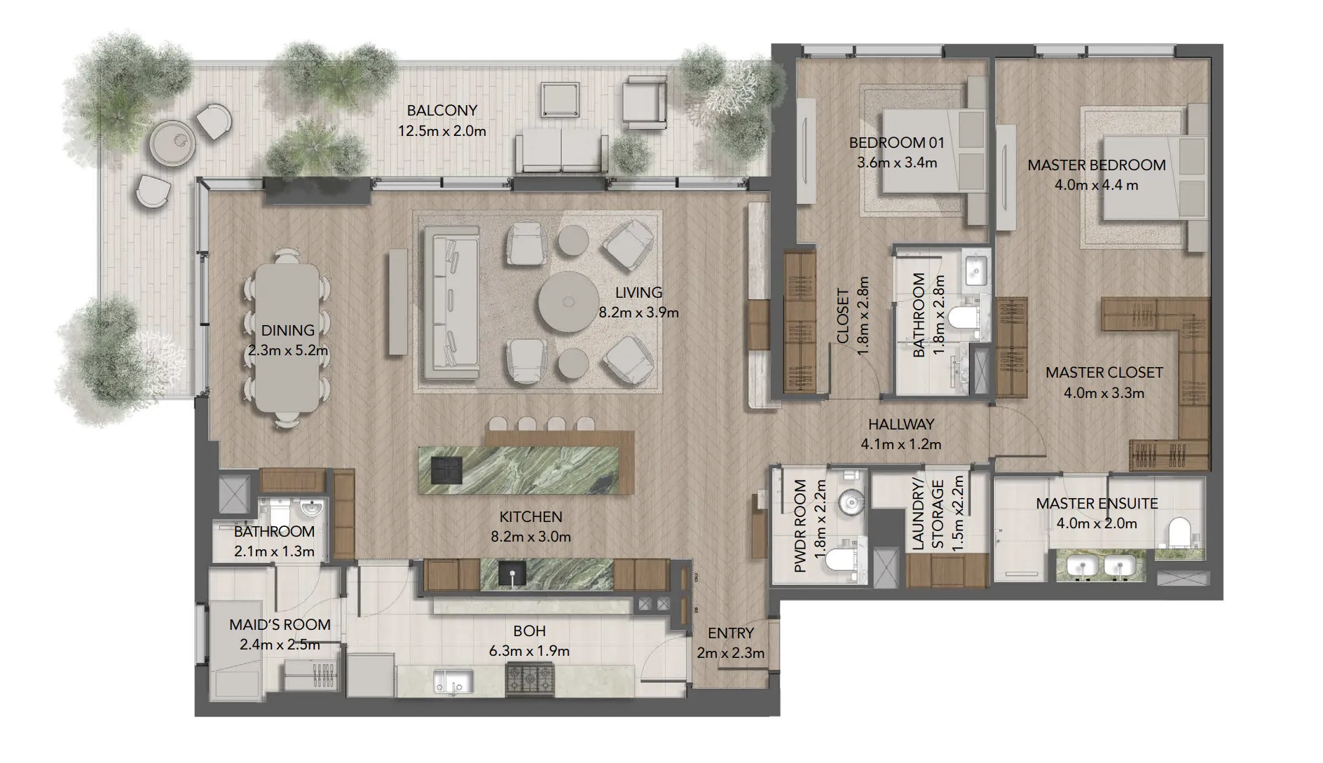 Inside the homes, materials and finishes reflect the development’s dedication to quality and natural beauty. From green marble and verdant textures to warm timber tones and red travertine, each palette is composed to create a sensory, nature-inspired sanctuary. High-quality kitchen cabinets, elegant countertops, premium wardrobes, and refined bathroom finishes come together to deliver a home defined by craftsmanship, sustainability, and timeless comfort.