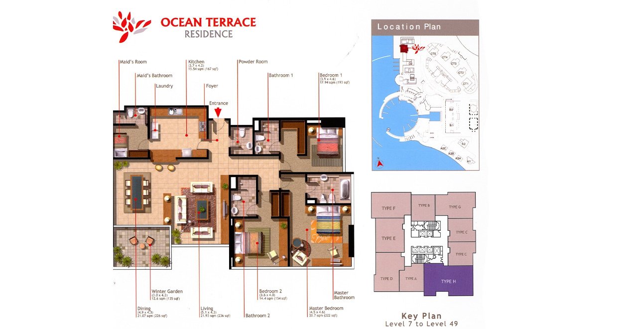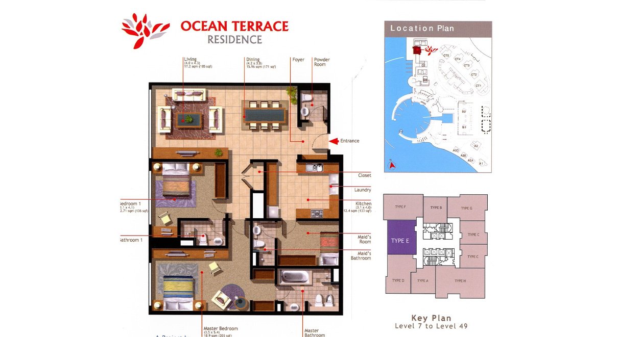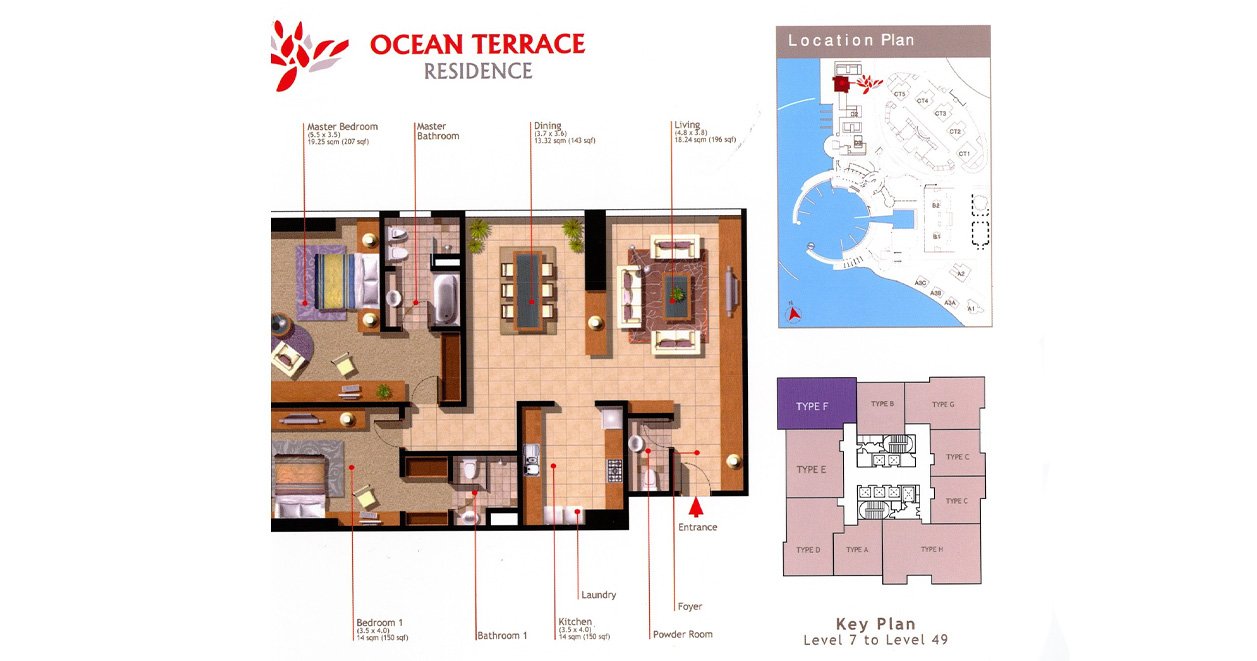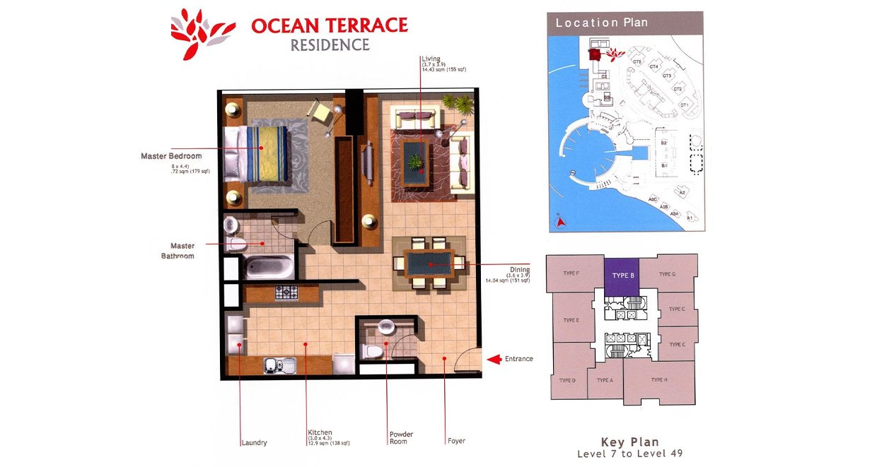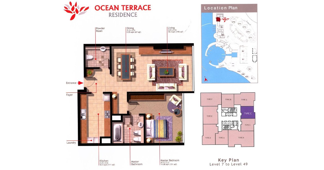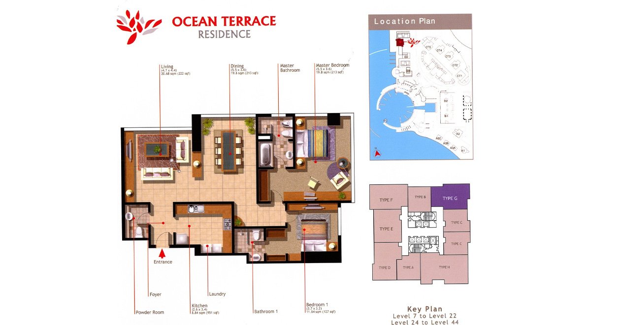 Residents enjoy a resort-inspired lifestyle supported by a comprehensive range of premium amenities. The tower includes adult and children’s swimming pools, a fully equipped gym, sauna and steam rooms, landscaped gardens, and dedicated children’s play areas. Additional conveniences such as covered parking, 24/7 security, on-site retail, cafés, prayer rooms, and nearby marina berths create a vibrant, self-contained community. With beach access and leisure facilities just moments away, Ocean Terrace Tower offers an elevated living experience tailored to modern urban lifestyles.