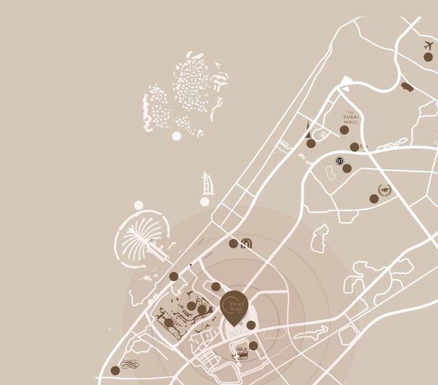 Situated in the heart of Jumeirah Village Circle, Pearl House offers exceptional connectivity to major Dubai destinations. Residents are just minutes away from Circle Mall, Al Khail Road, and key lifestyle attractions. Downtown Dubai lies 21 km away, Sufouh Beach is a short 12 km drive, and JSS International School is within 3 km. The community’s central location ensures easy access to business hubs, leisure destinations and essential services, making it ideal for families and professionals alike.