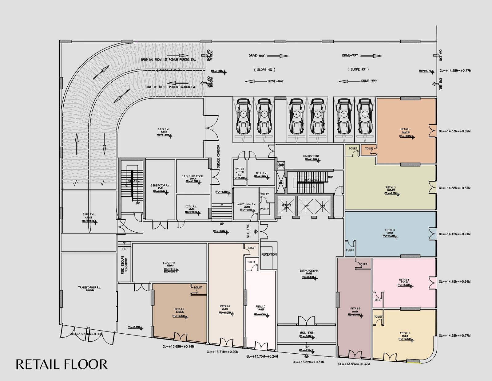 - G + 4P + 11‑floor residential structure