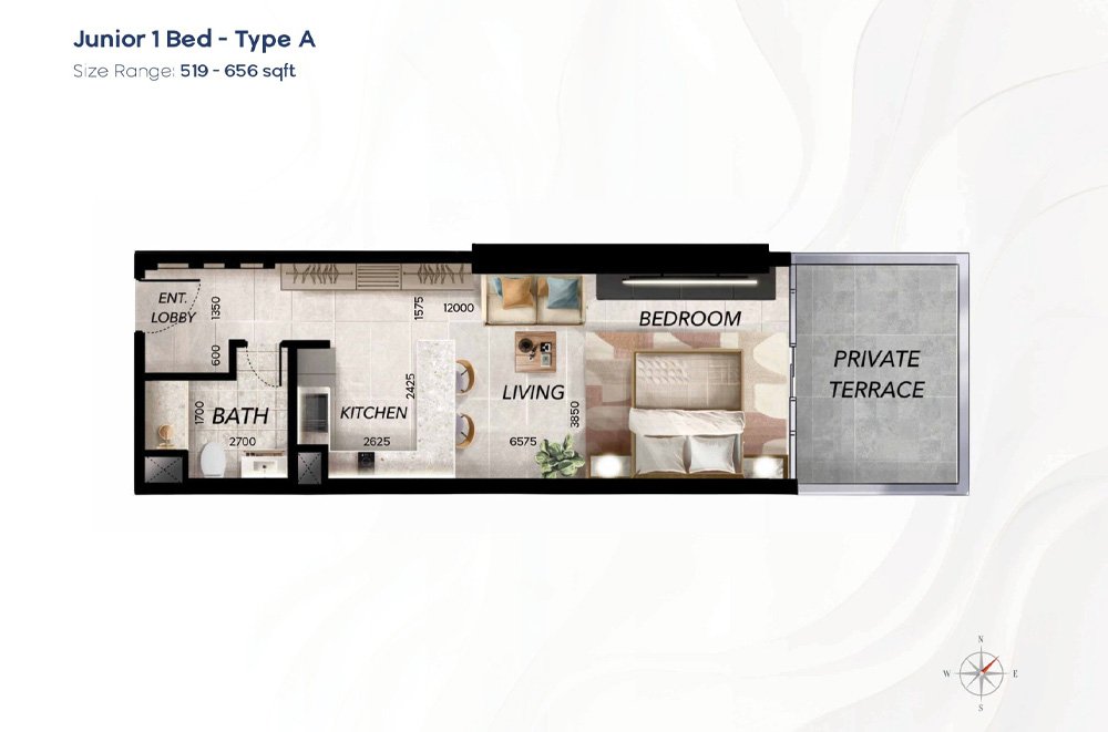 - 5th Floor: 1 × Junior 1BR | 2 × 1BR | 2 × 2BR