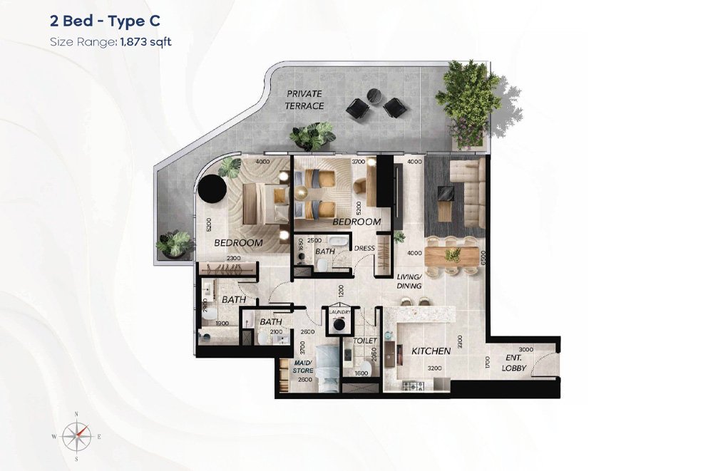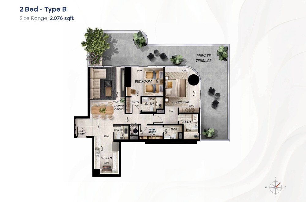 - 4th Floor: 1 × 2BR | 3 × 3BR with Private Pools