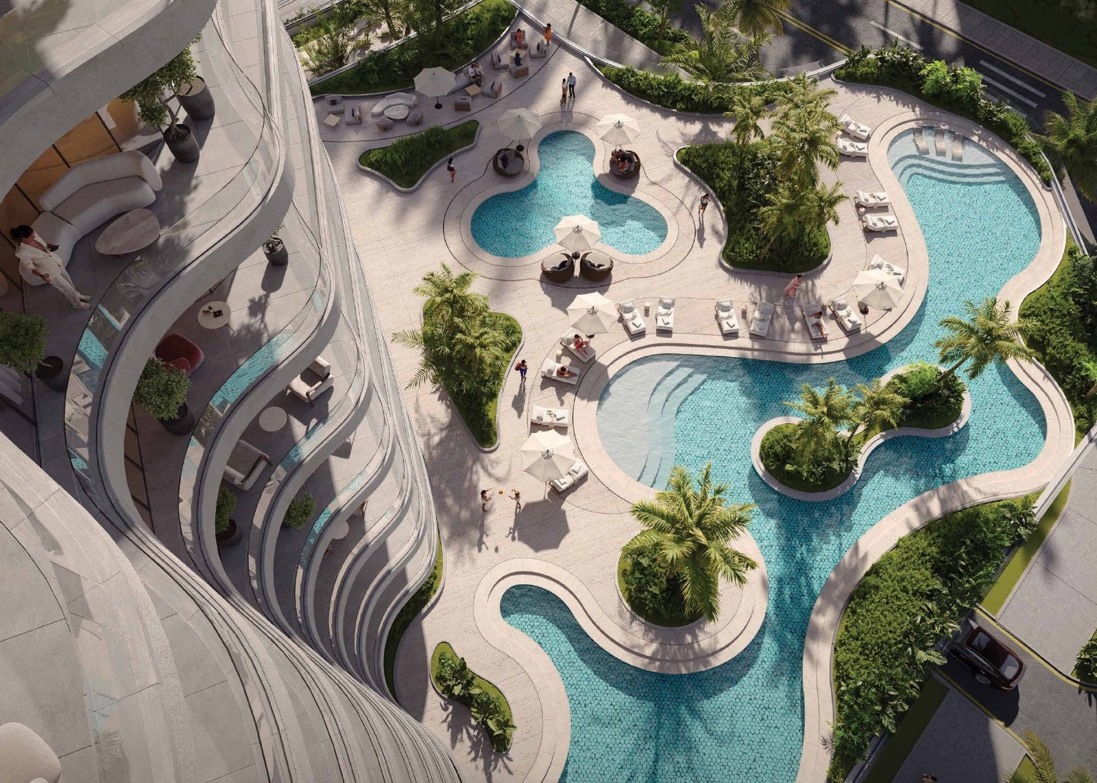 The architectural vision reflects modern elegance and functionality, featuring a contemporary façade and podium-style layout inspired by Radiant Elite. Interiors boast refined finishes, open-plan layouts, and floor-to-ceiling windows that maximize natural light and city views. Selected 3-bedroom units include private pools, adding a rare luxury element to high-rise living.