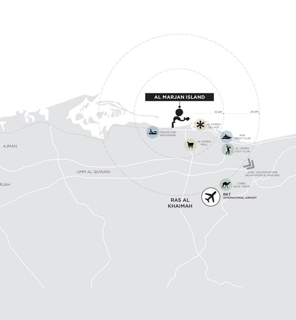 Strategically located just 45 minutes from Dubai International Airport, Al Marjan Island connects seamlessly to Ras Al Khaimah’s key destinations and business hubs. Future projects, including the Wynn integrated resort, further enhance its appeal as a premier leisure and investment destination. Sustainability is central to the island’s design, with energy-efficient infrastructure, green corridors, and community-focused public spaces. Combining luxury living, modern amenities, and unparalleled waterfront access, Al Marjan Island offers a unique lifestyle experience and a high-potential investment opportunity in the UAE’s growing northern emirates.