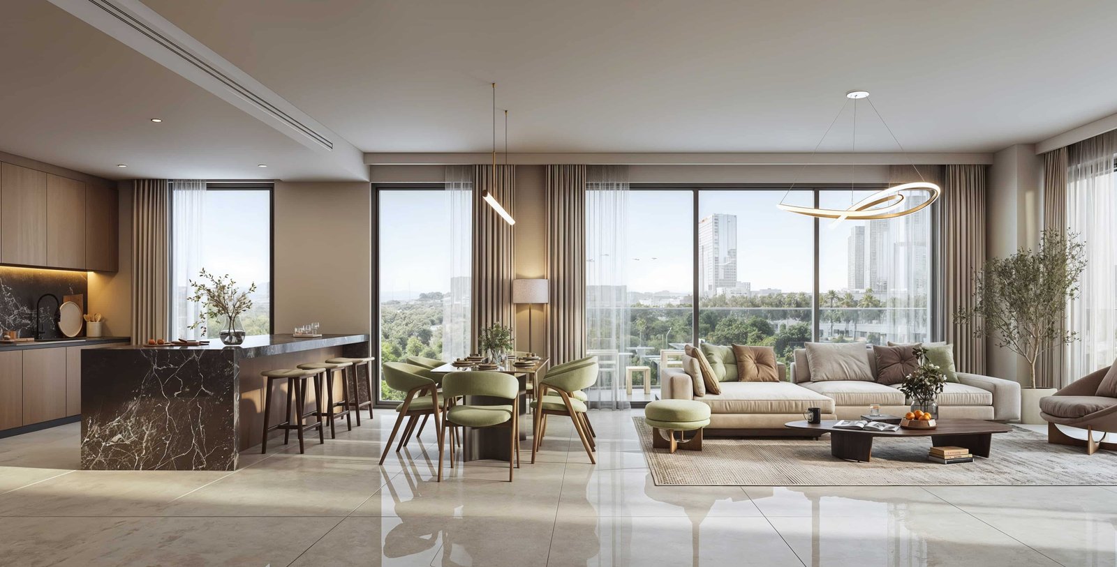 Set alongside the lush expanses of Al Fay Park, Rotana Residences North is defined by openness and nature. Thoughtfully planned amenities — including a multi‑purpose lounge and family‑friendly shared spaces — foster interaction, comfort, and community. With sizes ranging from 408 to 5,652 sqft, each residence is designed to maximize natural light and functionality, creating a seamless indoor‑outdoor connection. High‑quality materials, modern fixtures, and refined finishes ensure a sophisticated living environment shaped by Rotana’s hospitality promise and long‑term value.