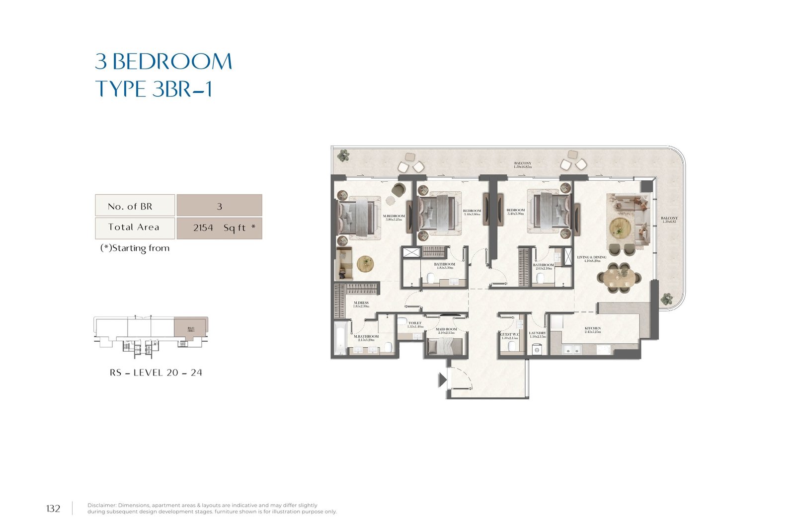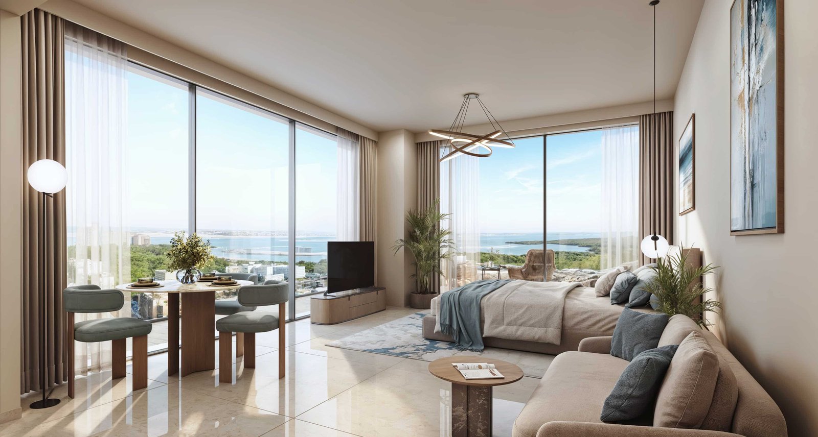 The South Tower features 242 residences, including studios to three‑bedroom apartments and two premium penthouses. The North Tower includes 197 spacious apartments and two luxurious duplex penthouses, designed for families seeking comfort, privacy, and a serene lifestyle.