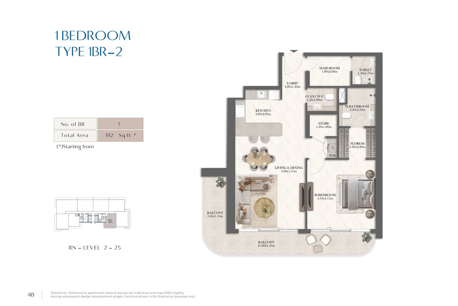 The architectural vision blends contemporary elegance with functional design. Clean lines, expansive glass façades, and modern structural elements create a striking presence on Al Reem Island. Interiors are crafted with a focus on comfort and sophistication, featuring premium flooring, sleek kitchens, and well‑appointed bathrooms. Generous layouts, high ceilings, and large windows create a bright, airy ambiance — a personal sanctuary designed for life and finished to perfection.