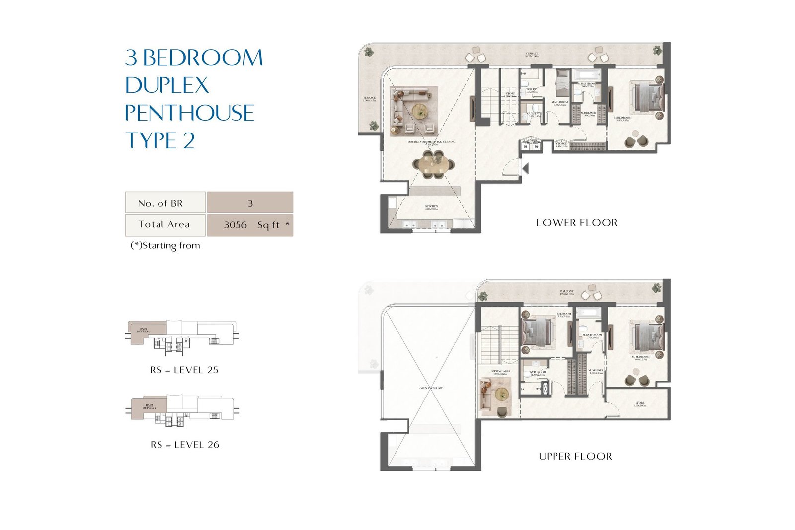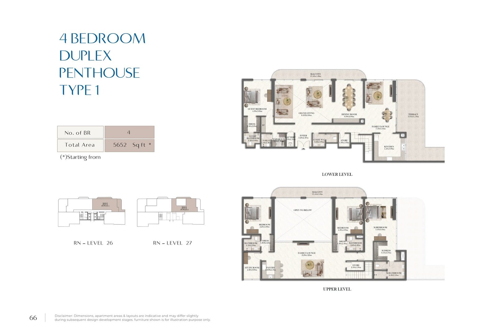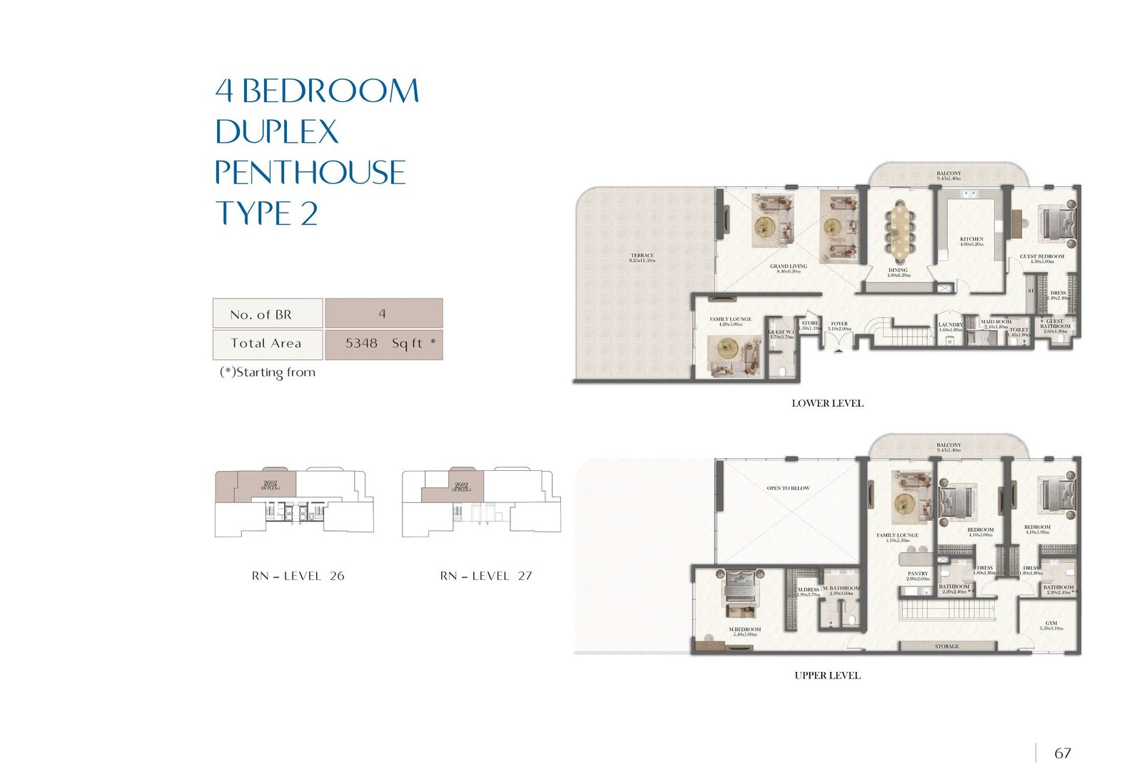 - 4 Bedroom Duplex Penthouse: 5348–5652 sqft