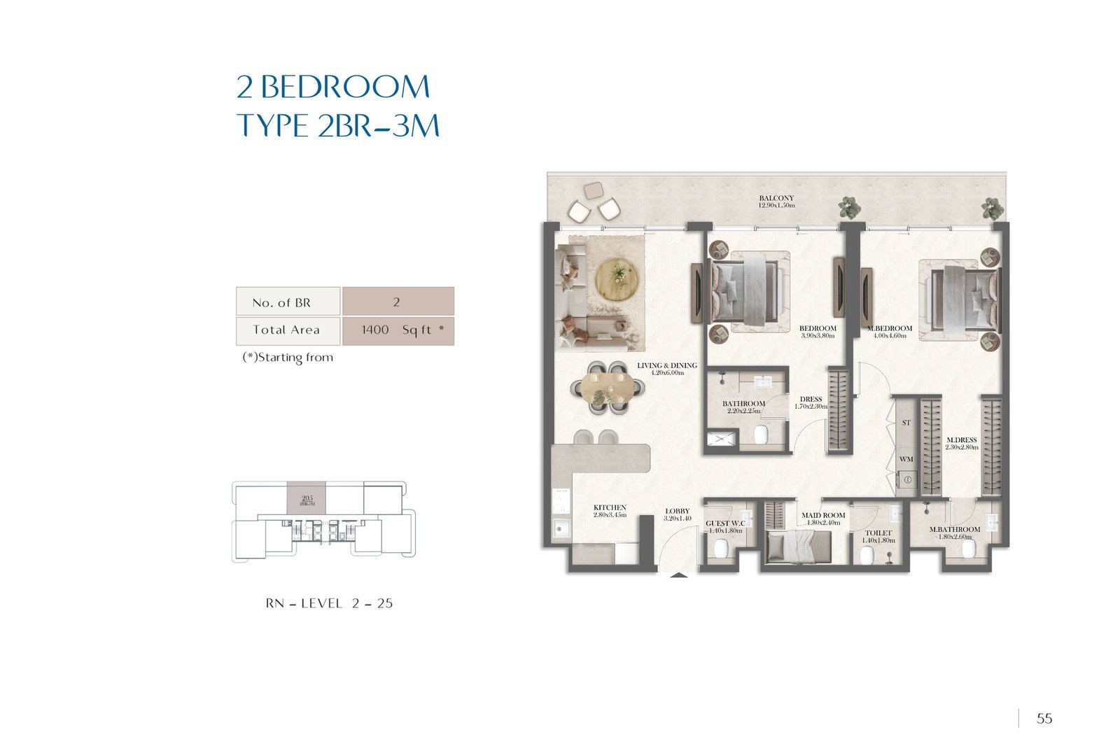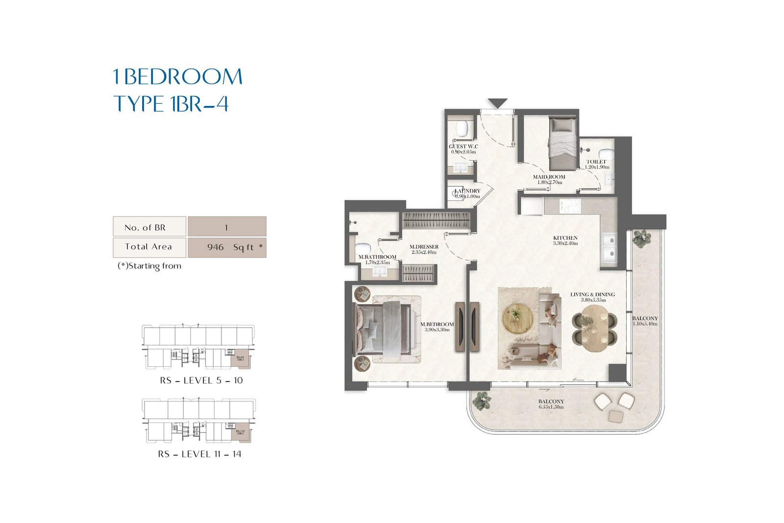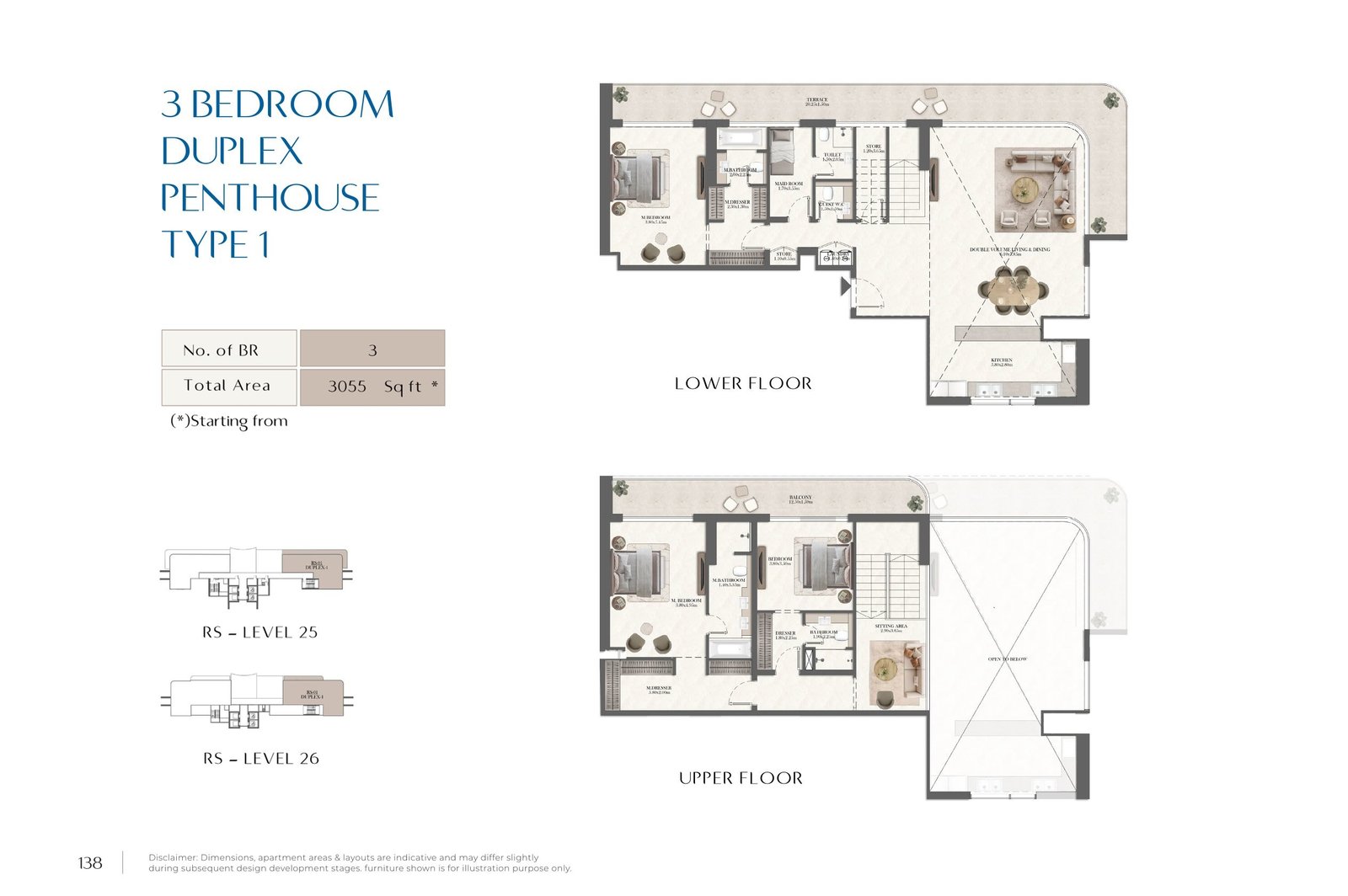 - 4 Bedroom Duplex Penthouse: 5348–5652 sqft
