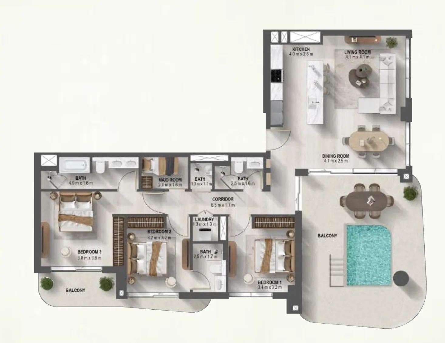 The project features an extensive collection of resort-style amenities thoughtfully distributed across dedicated lifestyle levels. Residents enjoy landscaped serenity gardens, waterfall features, sunken island pools, infinity pools, outdoor fitness areas, kids’ pools and play zones, BBQ areas, outdoor cinema, jacuzzi, spa-style relaxation pools, and sky gardens with observation decks. Indoor amenities include a state-of-the-art gym, sauna, indoor cinema, games area, and family-friendly communal spaces, creating a holistic living environment focused on wellness, leisure, and community.