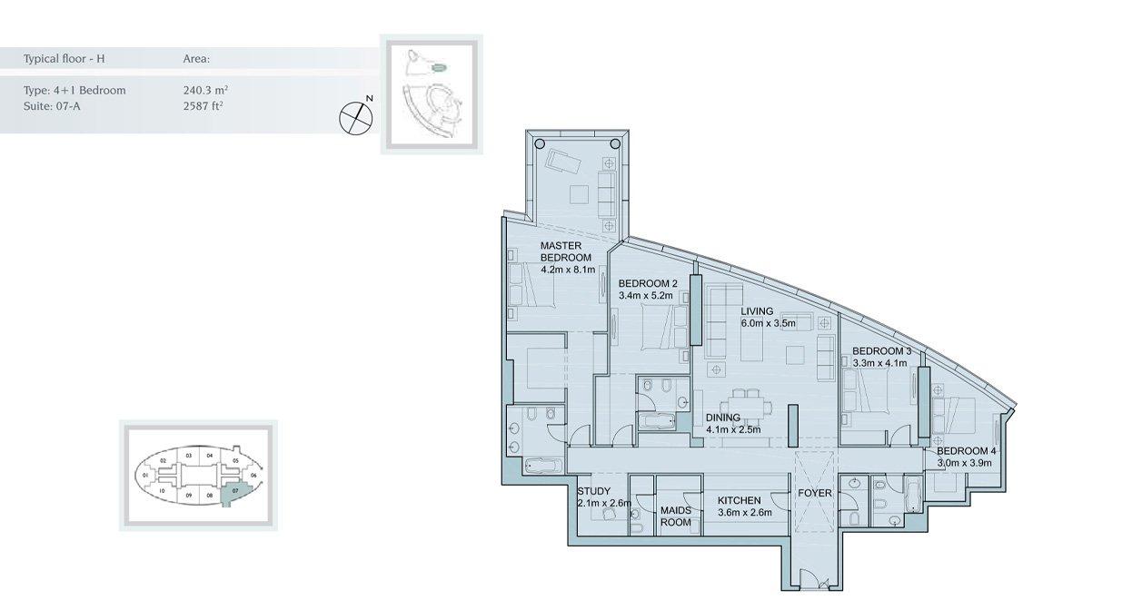 - 1 to 6‑bedroom units with panoramic sea and skyline views