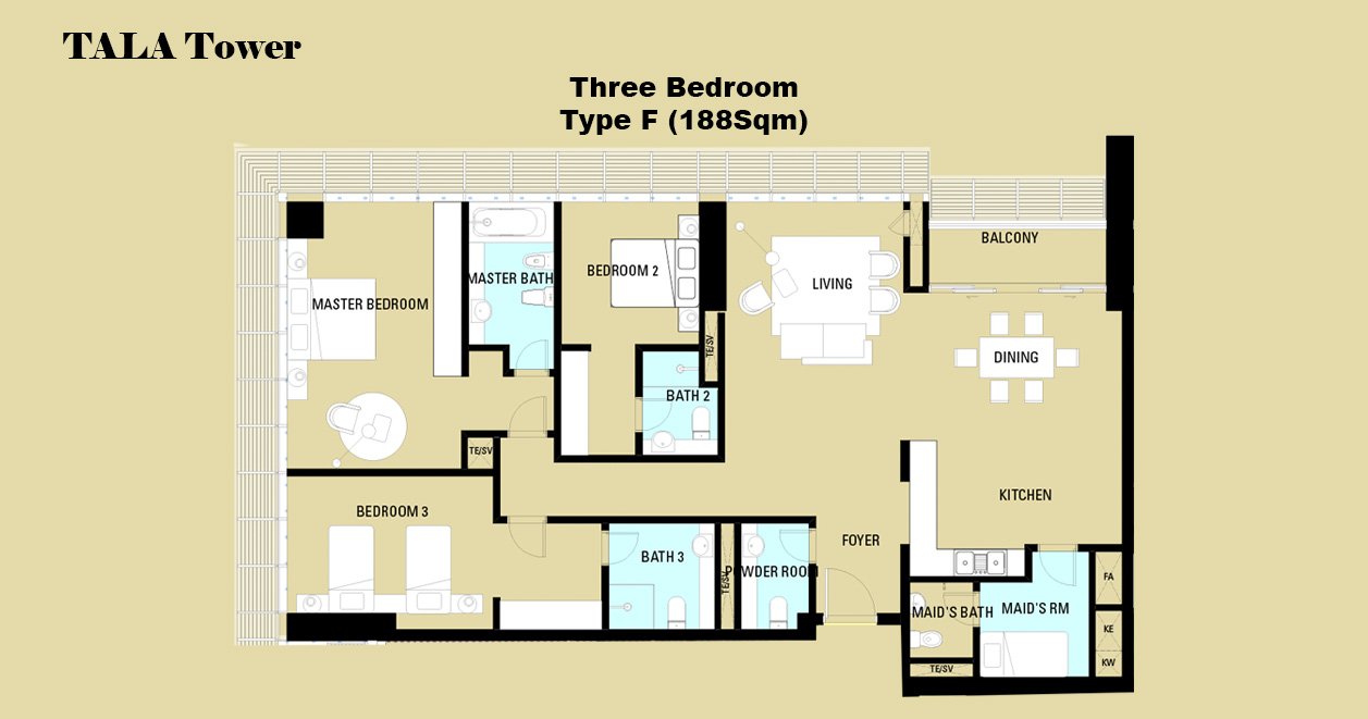 Tala Tower features 375 thoughtfully designed apartments that cater to individuals, couples, and families. Each residence offers spacious layouts, large living and dining areas, multiple bathrooms, and private balconies overlooking the marina. Two-bedroom units include an additional flexible room ideal for a study or storage, while three-bedroom apartments come with maid’s rooms and attached bathrooms. High-quality finishes, efficient floor plans, and floor-to-ceiling windows ensure bright, comfortable, and functional living spaces suitable for both end-users and investment portfolios.