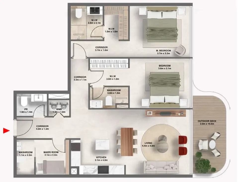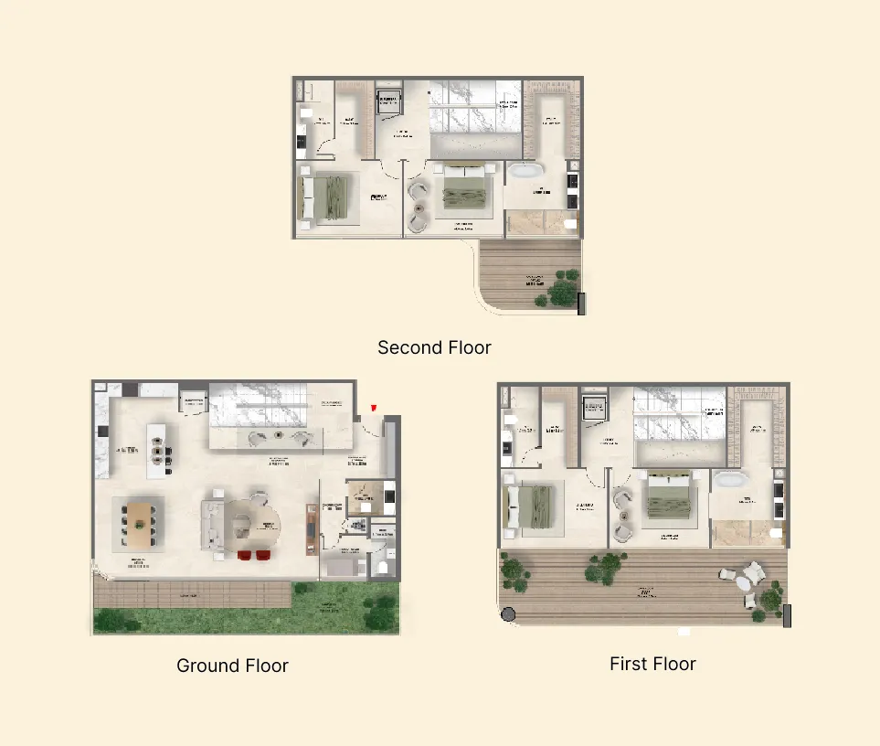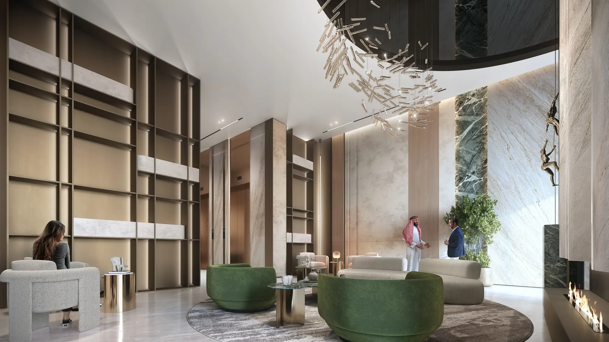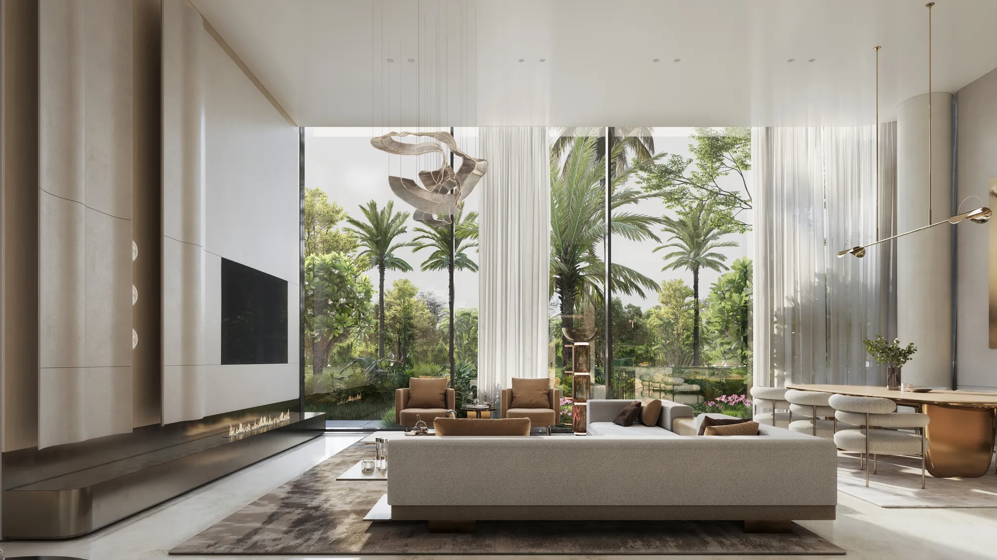 The interiors feature warm materials and tactile finishes, including soft neutral tones, stone-inspired surfaces, and elegant textures that enhance the sense of calm. Kitchens are bespoke, blending modern cabinetry with refined finishes and integrated lighting. Bathrooms follow the same harmonious palette, with cool stone underfoot and warm lighting that creates a spa-like ambience. All residences come fully furnished, as explicitly stated in the amenities section, ensuring a move-in-ready experience with cohesive contemporary furniture and décor throughout.