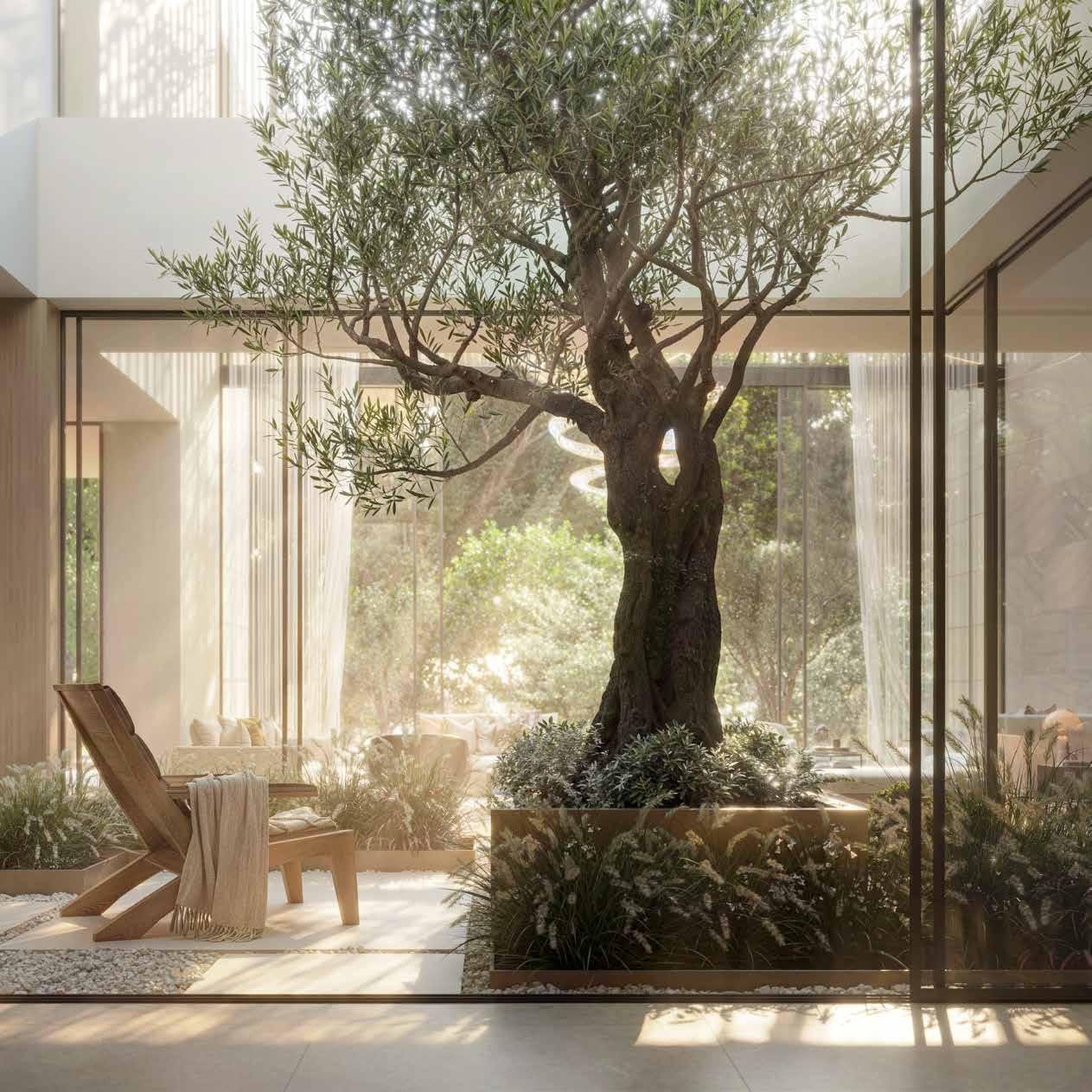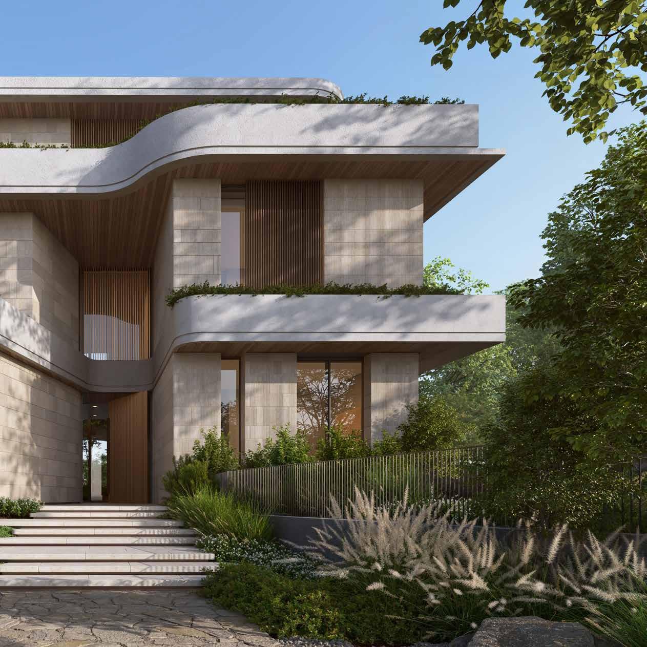 Moringa Mansions feature spacious 5 and 6 bedroom layouts complete with private gardens, central courtyards, rooftop terraces, and optional private pools. Each villa comes with private elevator access, a driver’s room, basement parking, and high-quality finishes, including engineered wood, porcelain tiles, and bespoke cabinetry. The façades are available in elegant combinations such as stone and copper or limestone with white render, complementing the lush surroundings. Generous living spaces maximize natural light and airflow, creating a calm and harmonious atmosphere.